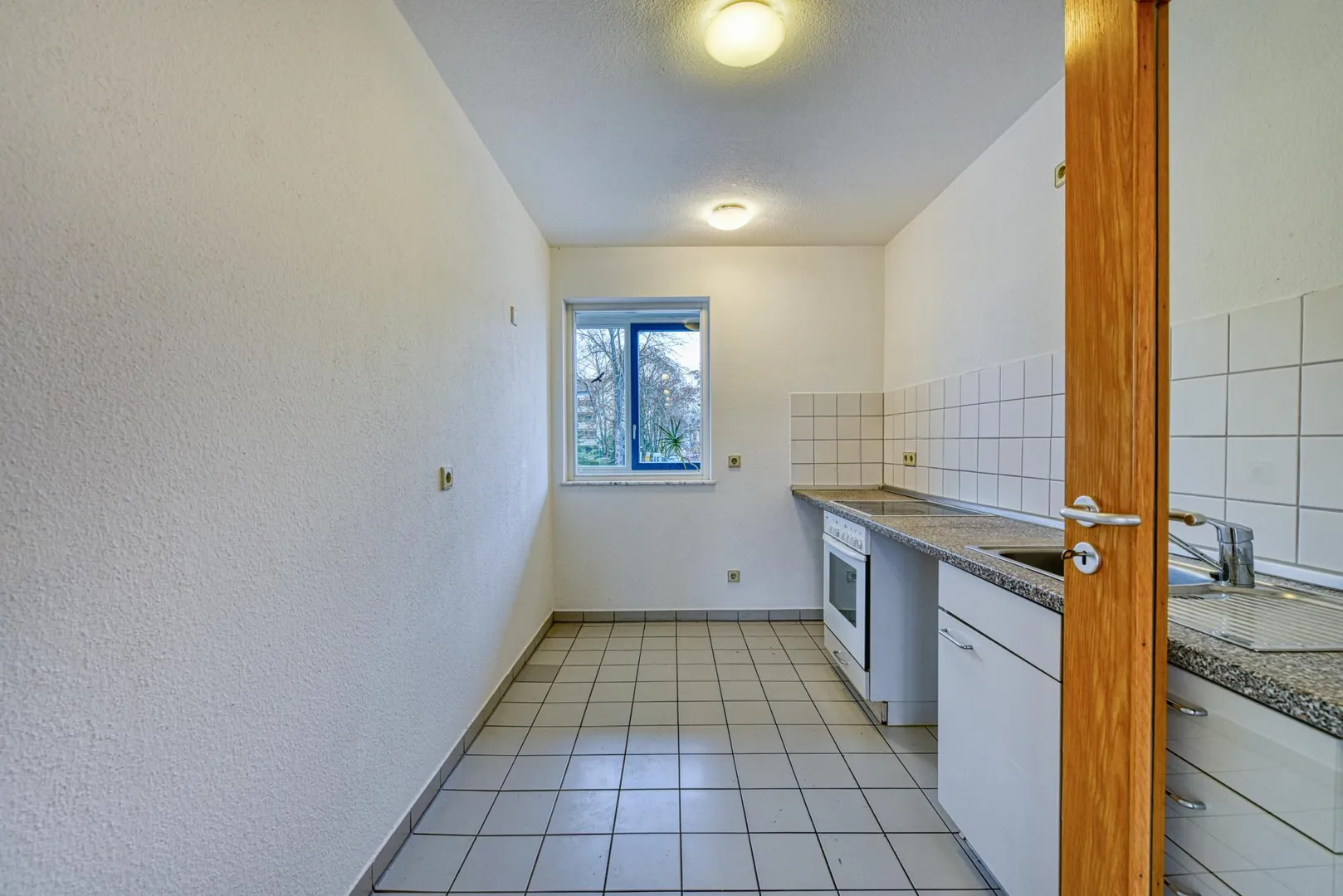 Im Flur und in den Zimmern ist Massivholz-Parkett ausgelegt, welches frisch abgeschliffen und versiegelt wurde. Das Badezimmer und die Küche sind gefliest.