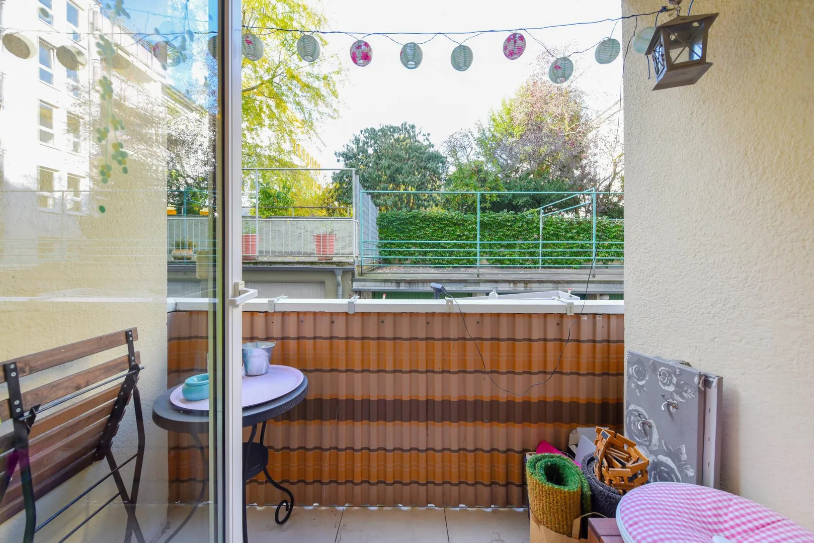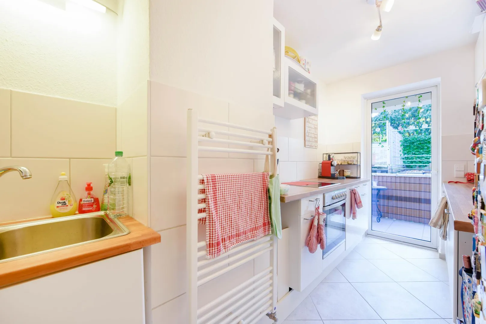 Der überdachte, ca. 3 m² große Nord/West-Balkon ist über die Küche begehbar.