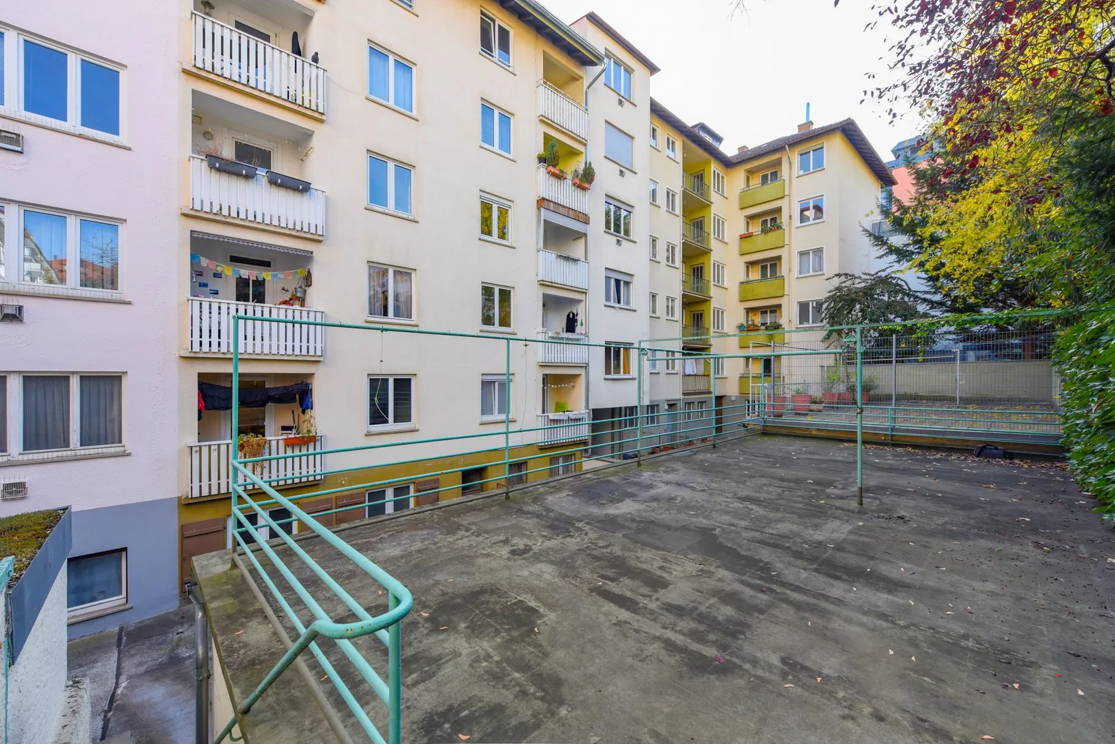 Zur Wohnung gehören ein Abstellraum im Untergeschoss, ein Abstellraum auf der Bühne sowie eine Einzel-Garage im Innenhof.