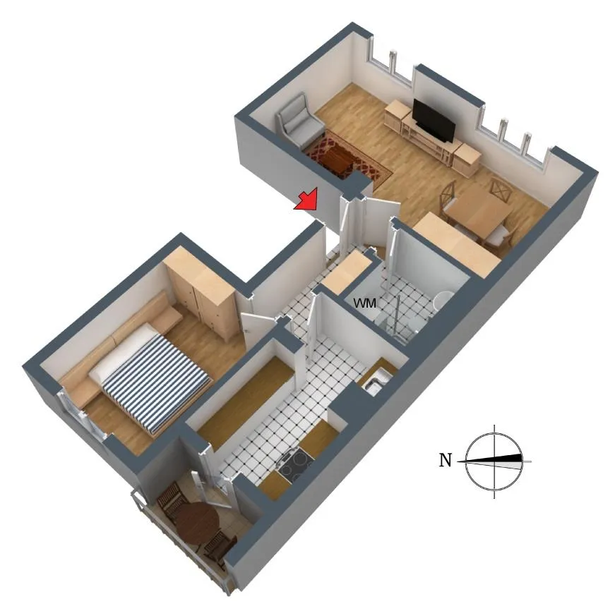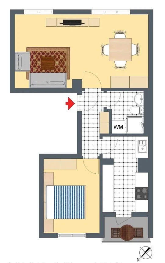 Das Schafzimmer und die Küche sind nach Nord-Westen ausgerichtet.