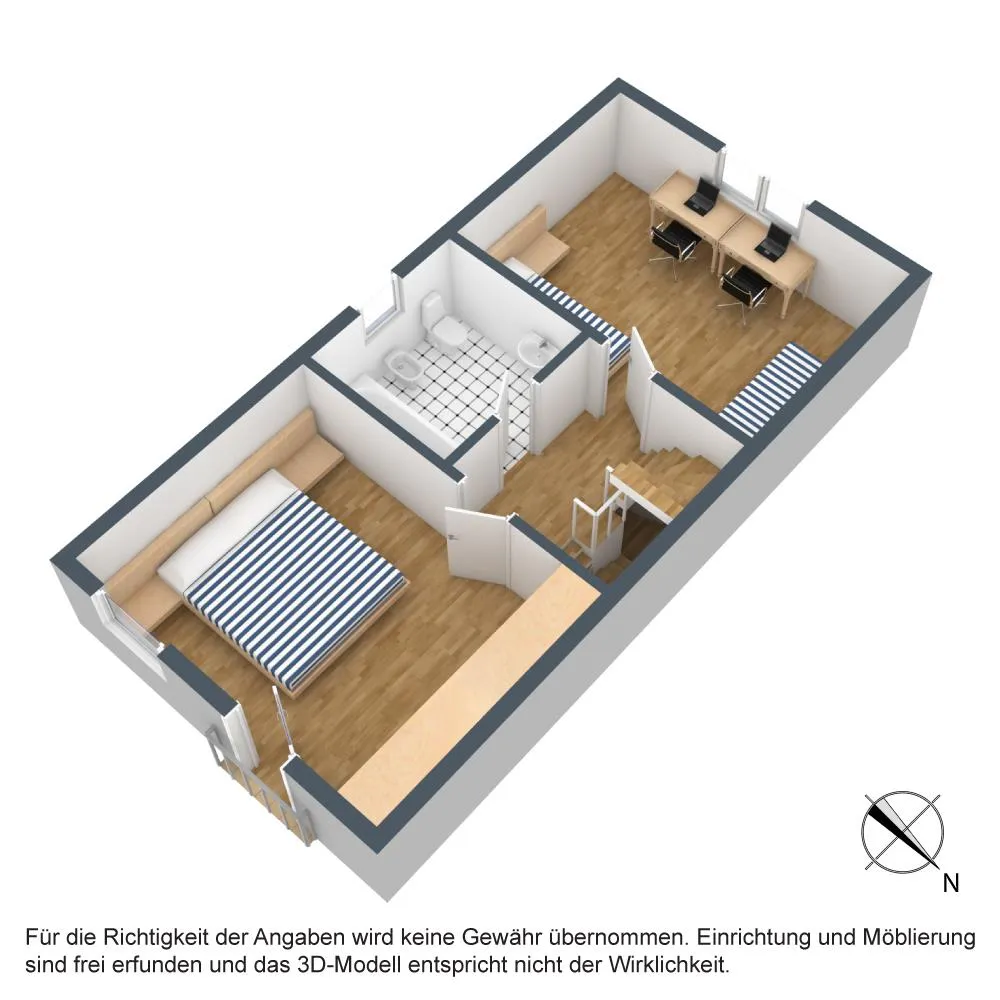 Dachgeschoss: zwei Kinderzimmer, Bad mit Fenster.