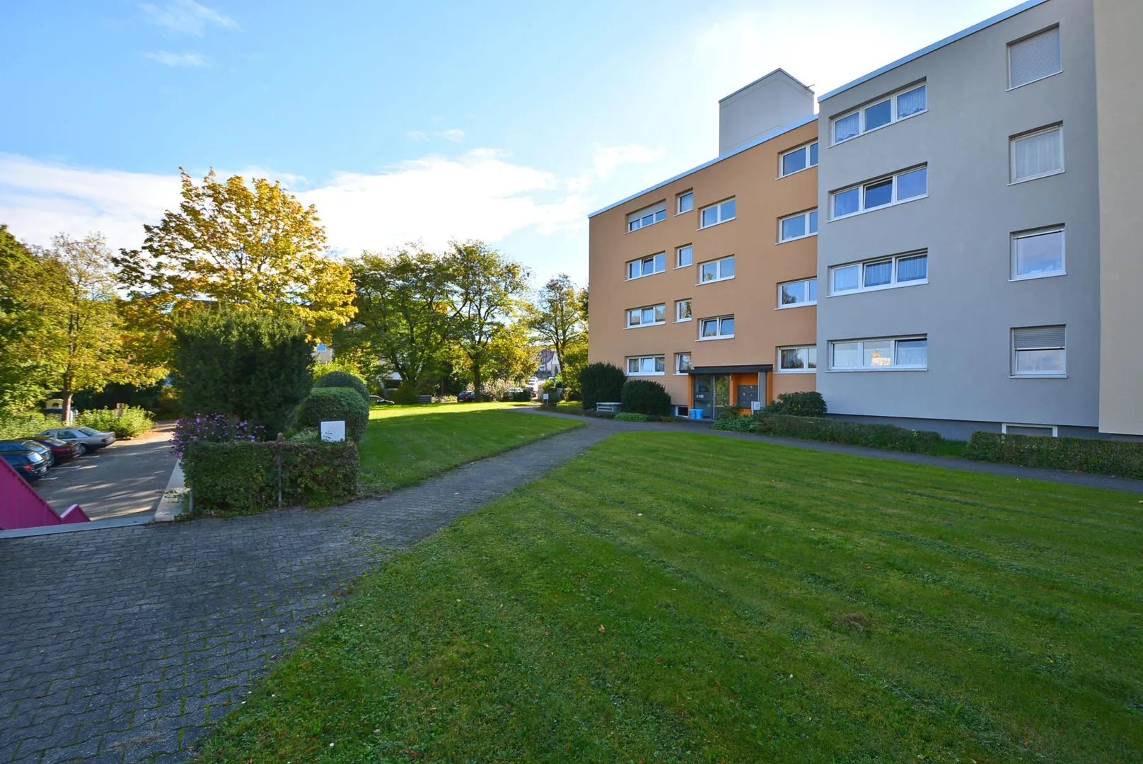 Im Preis inklusive ist ein Pkw-Stellplatz in der angrenzenden Tiefgarage der Anlage, ca. 40 m vom Haus entfernt.