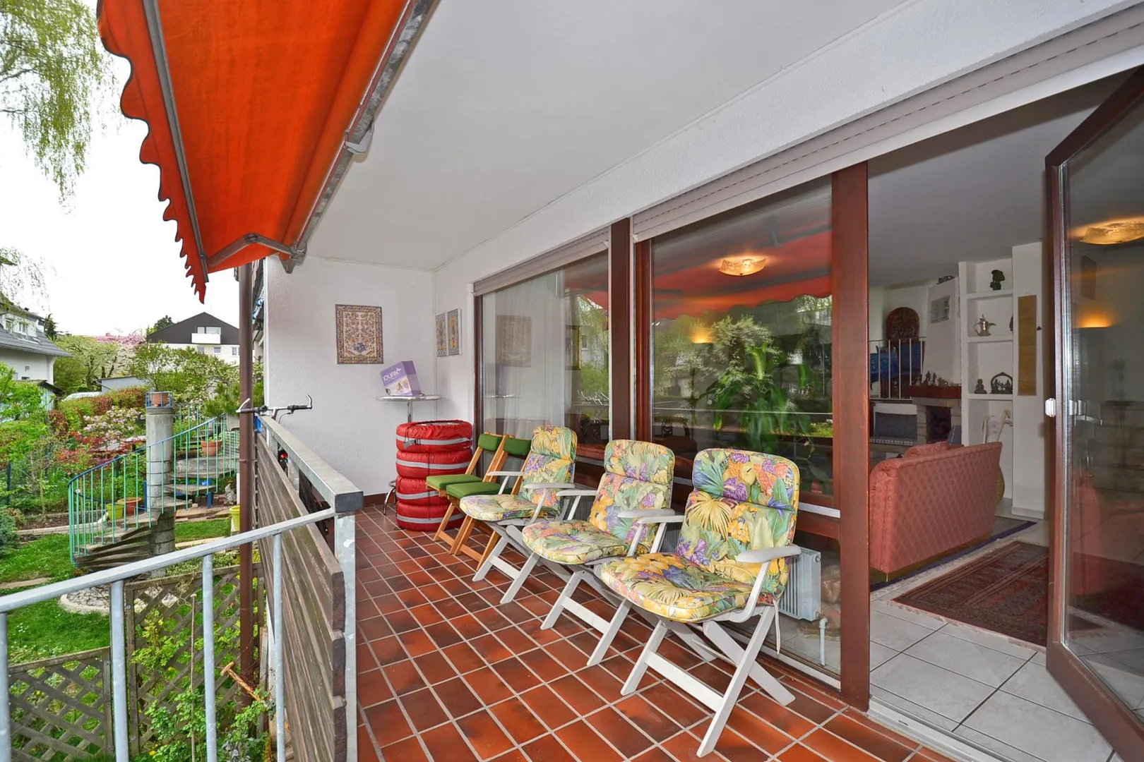 Von hier kommen Sie auch direkt auf den sonnigen Süd-Balkon. Dieser ist überdacht und mit einer Markise ausgestattet.