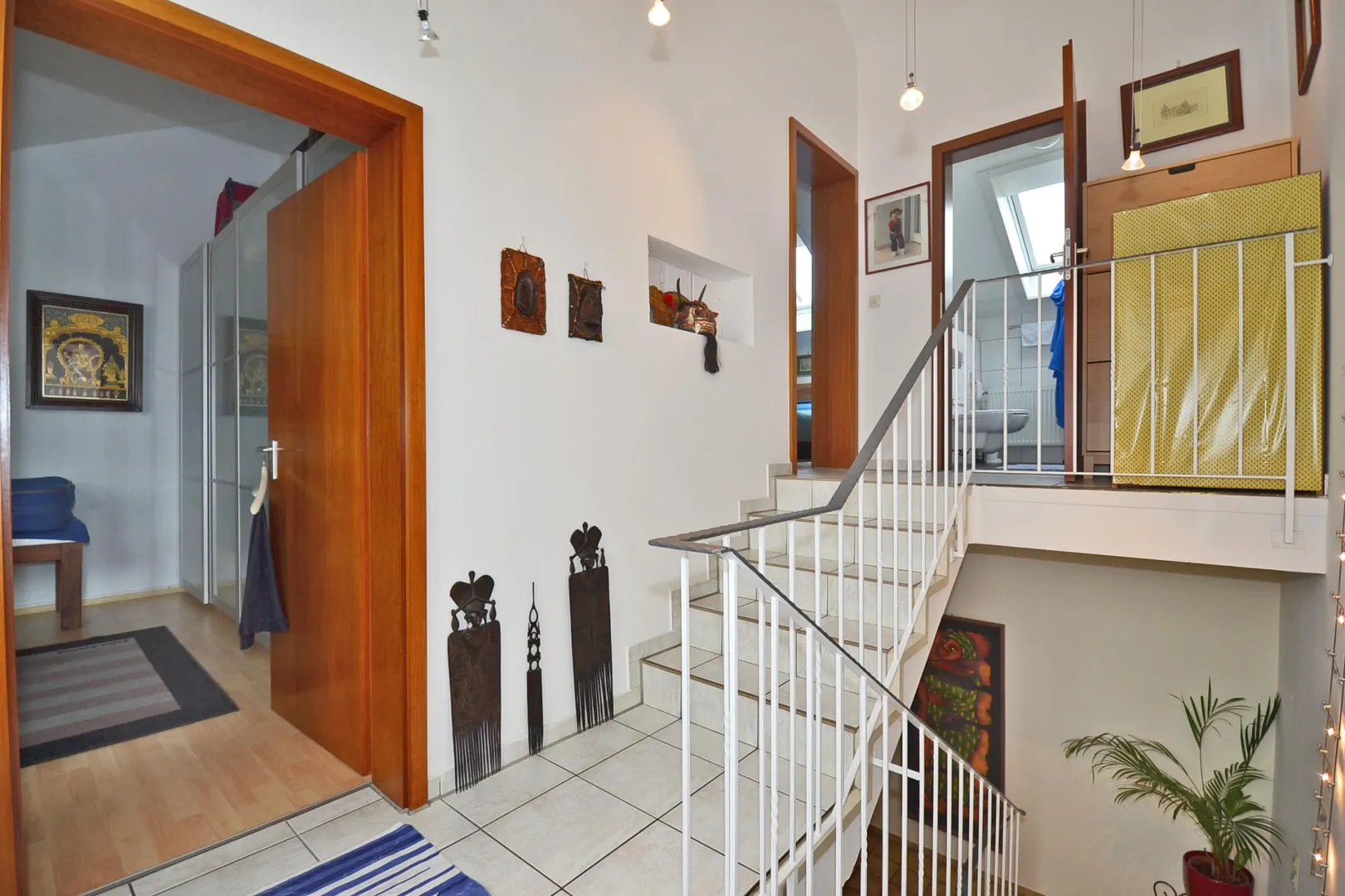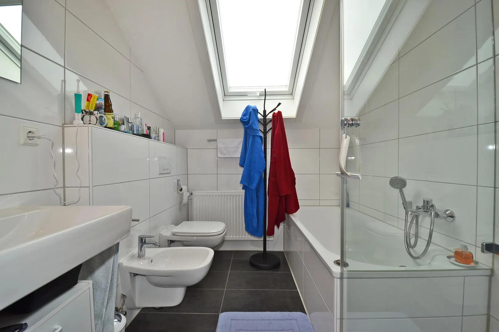 Im Dachgeschoss befinden sich die Dachterrasse, das Kinderzimmer und das Schlafzimmer, sowie ein 2012 vollständig modernisiertes und helles Tageslichtbad mit Badewanne, Dusche, Waschbecken, Bidet und WC.