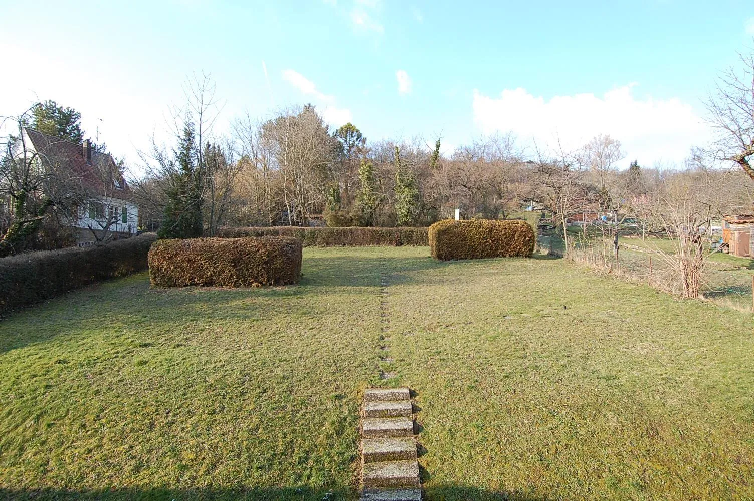 Hinter dem Haus befindet sich der gemeinschaftliche Garten (Hanglage) mit Terrasse.