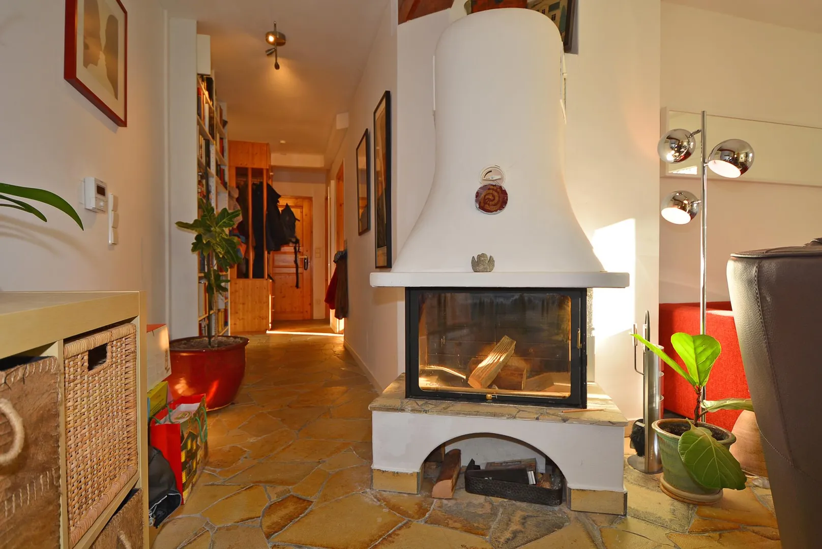 Flur und Wohnzimmer sind offen verbunden.