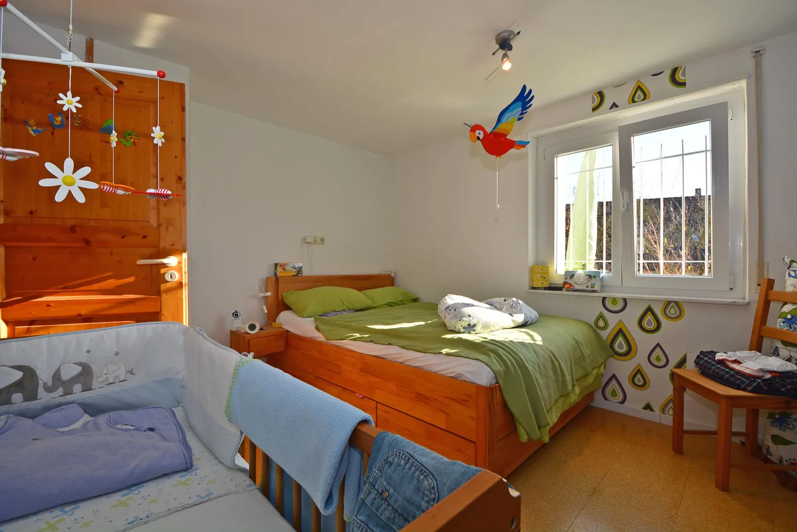 Zum sicheren Lüften in Abwesenheit ist in jedem Raum ein Fenster mit Außengitter vorhanden.