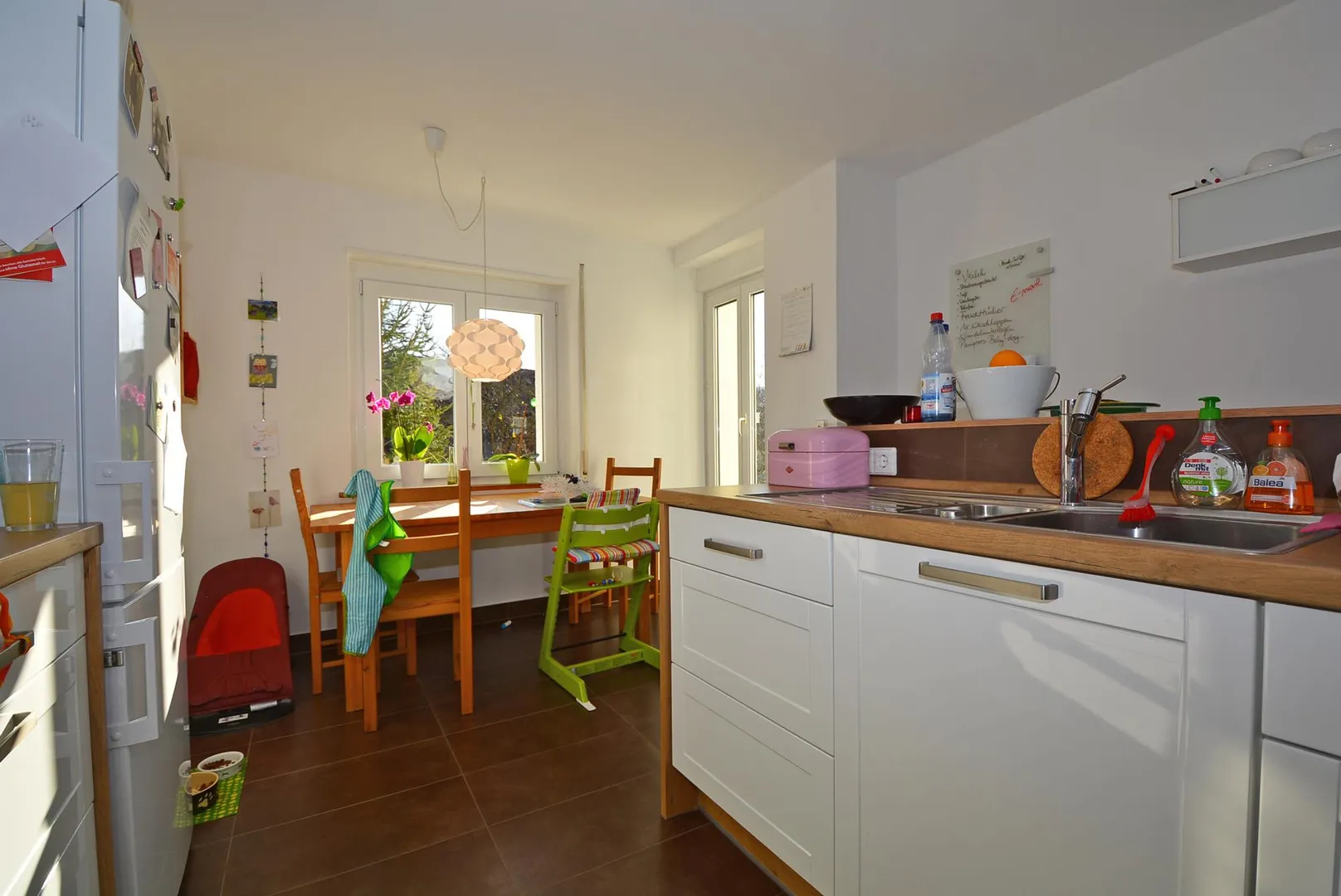 Die sonnige und geräumige Küche bietet auch Platz für einen Esstisch.