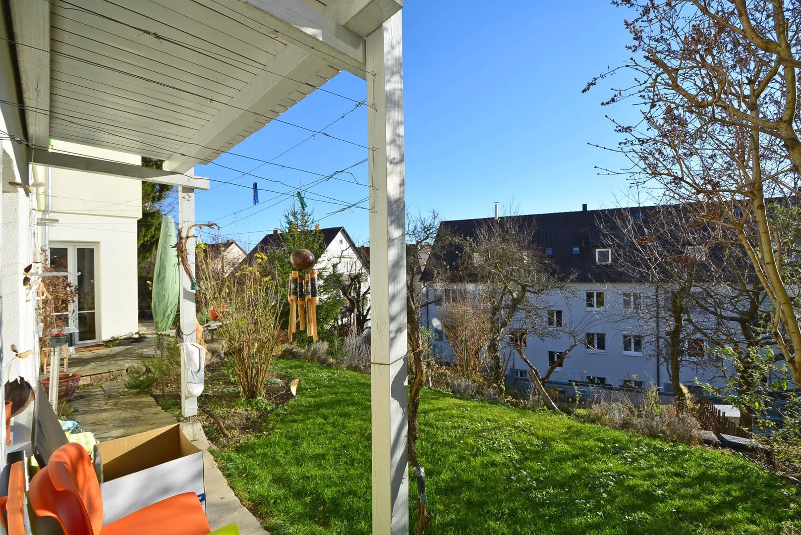 Vom Wohnzimmer und von der Küche gelangen Sie nach Außen.