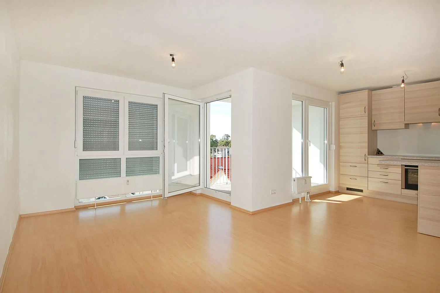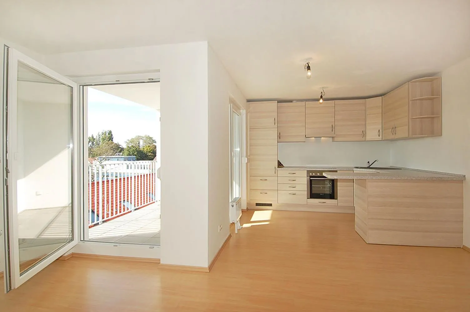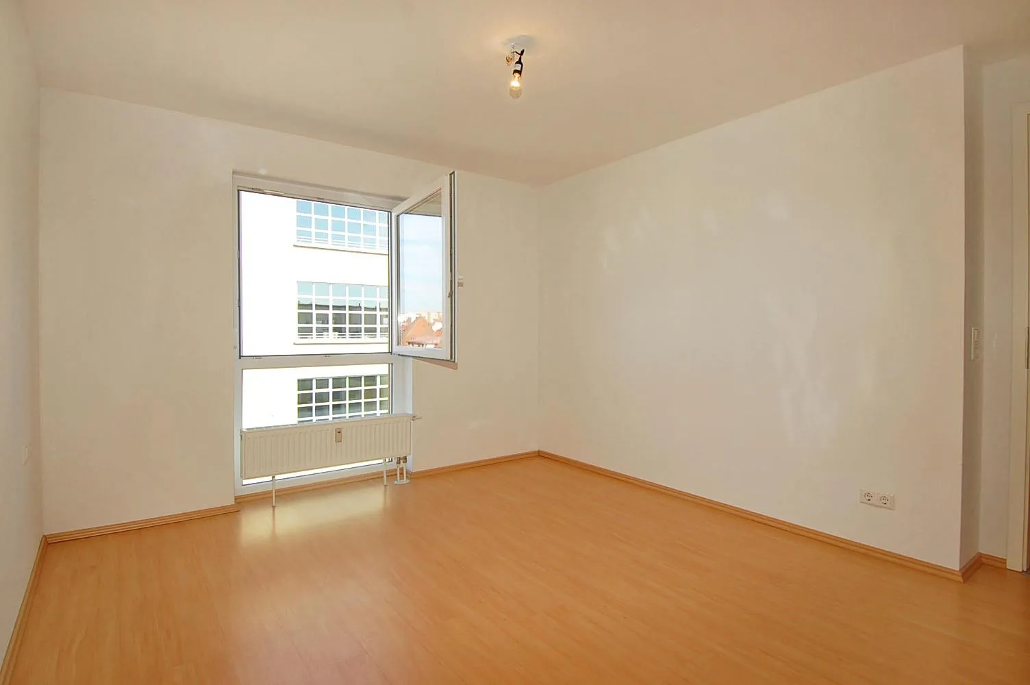 Diese sonnige DG-Wohnung ist mit Laminatboden und Raufasertapeten ausgestattet.