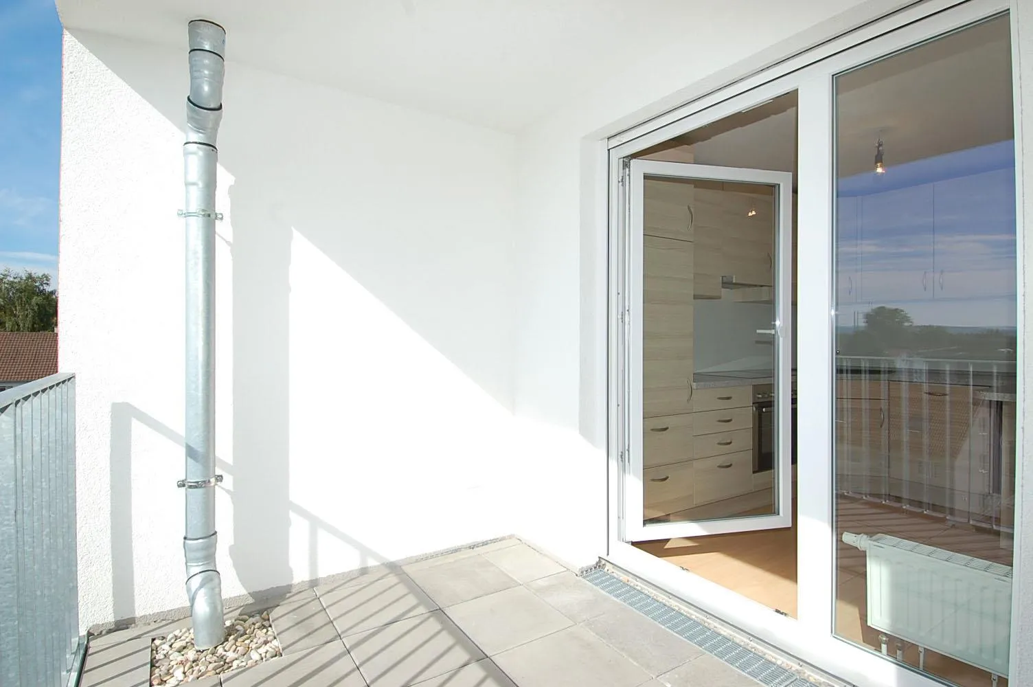 Vom Wohnbereich und von der Küche haben Sie Zugang auf den sonnigen und überdachten Süd-Balkon mit schönem Fernblick bis nach Stuttgart.