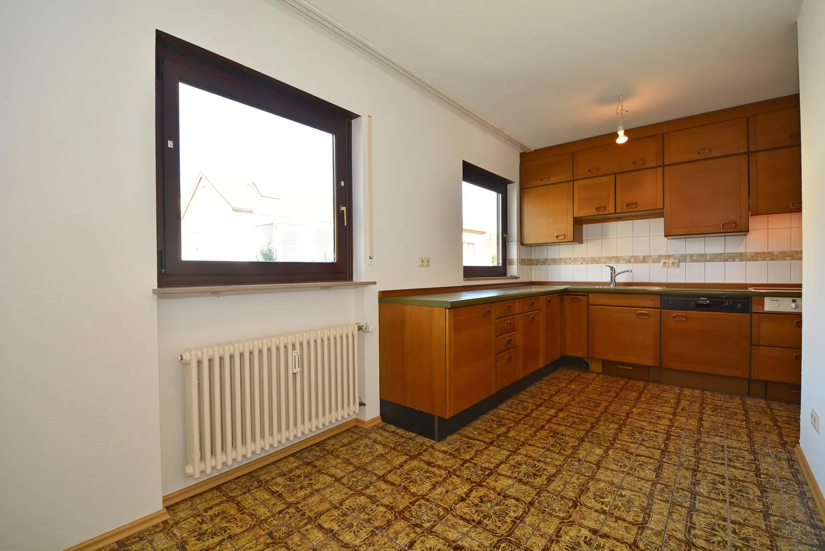 Eine vom Stil ältere jedoch vollständige und funktionsfähige Einbauküche ist vorhanden.