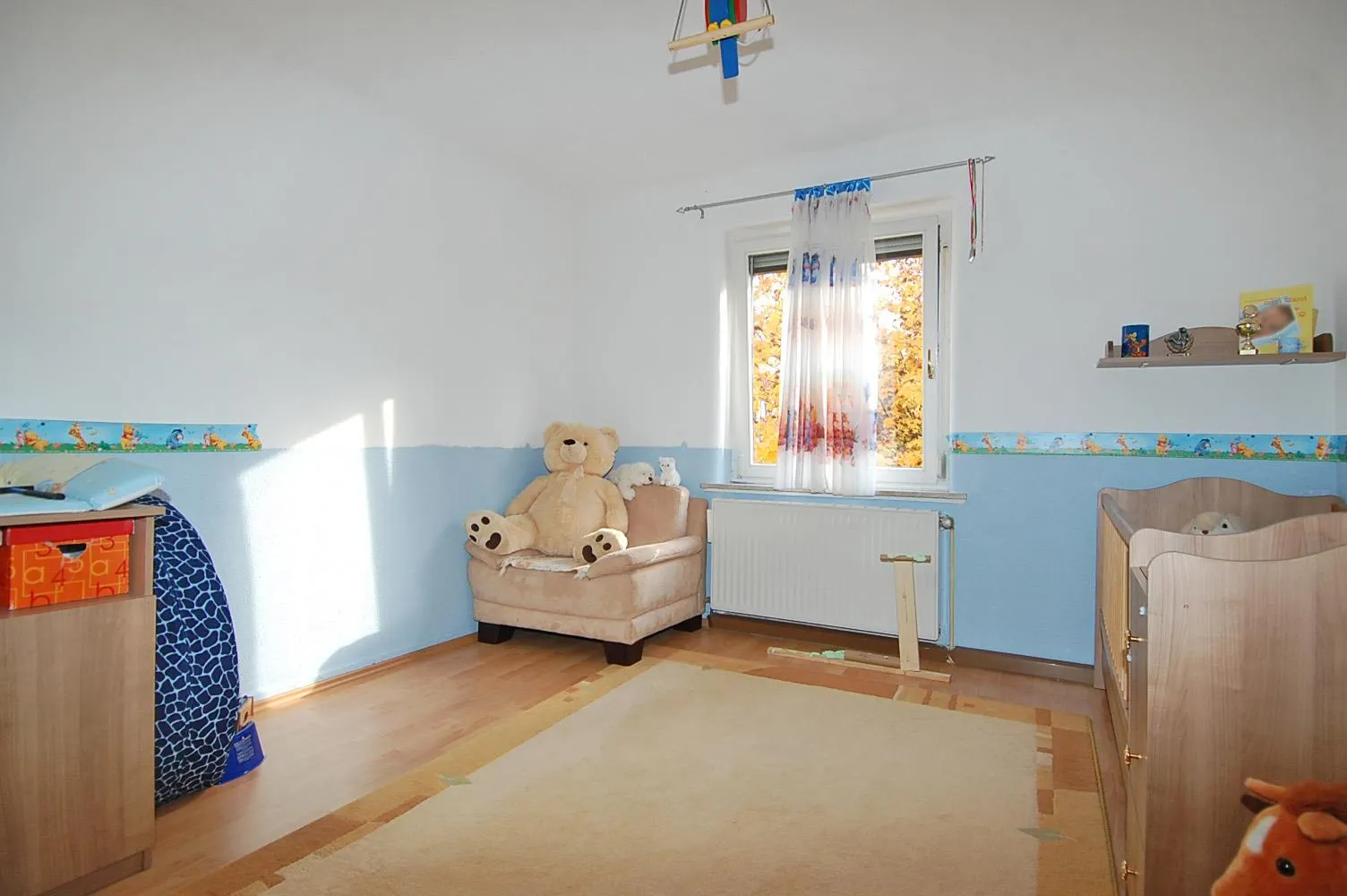 Im Wohn- und im Kinderzimmer ist Laminatboden verlegt, im Schlafzimmer wird auf Wunsch neuer Laminat- oder Teppichboden verlegt.
