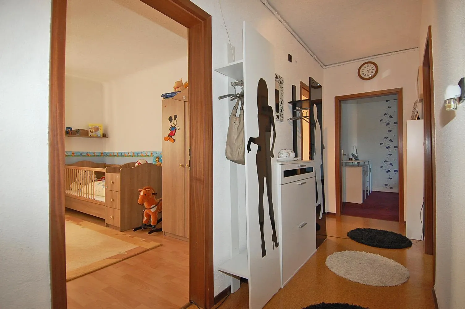 Der Wohnungsflur ist mit Korkboden ausgestattet und verfügt über einen kleinen mit einer Schiebetüre abgetrennten Abstellbereich.