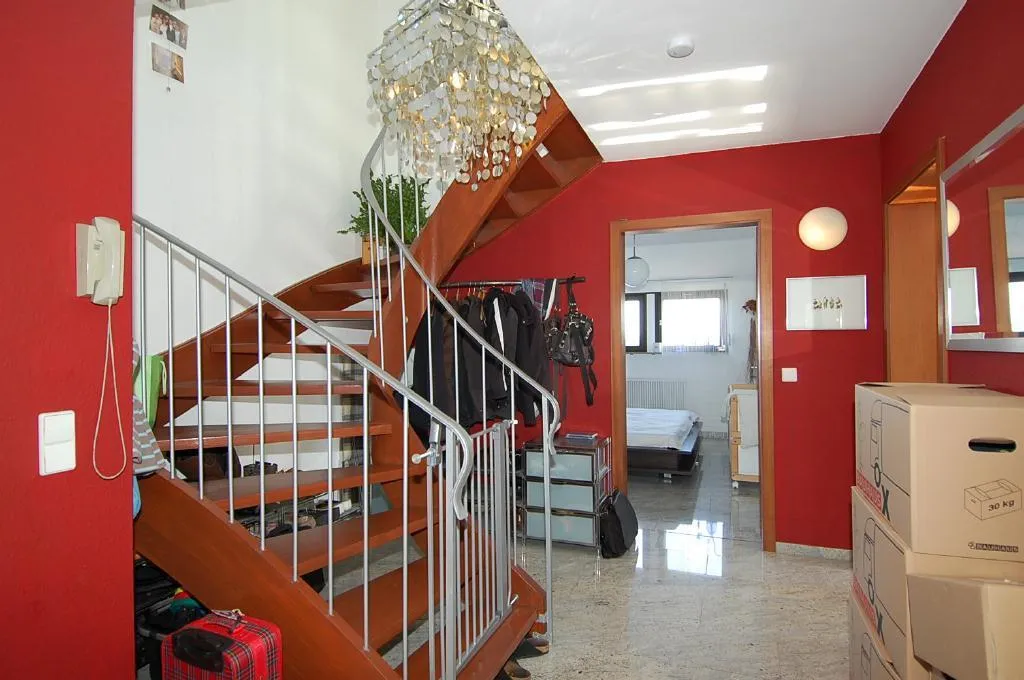 Von der geräumigen Diele aus gelangen Sie über eine offene Holztreppe in die obere DG-Ebene: