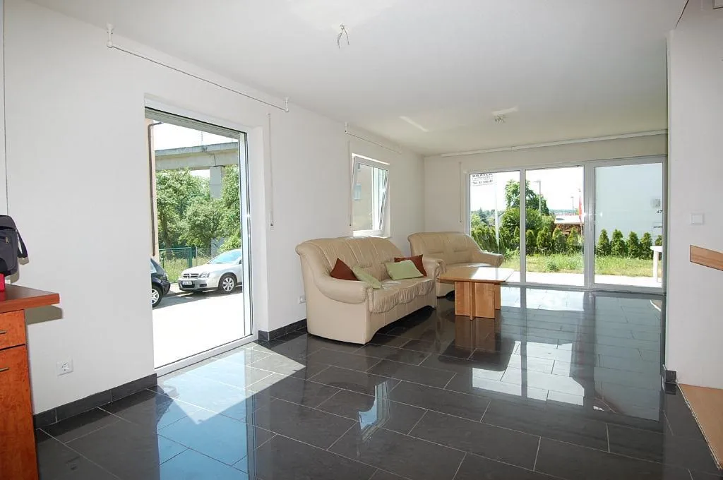 Das Erdgeschoss ist mit einem Fliesenboden mit Fußbodenheizung ausgestattet.