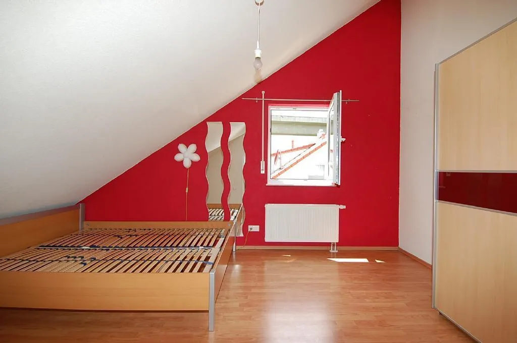 In den Zimmern im Ober- und Dachgeschoss ist Laminat verlegt.
