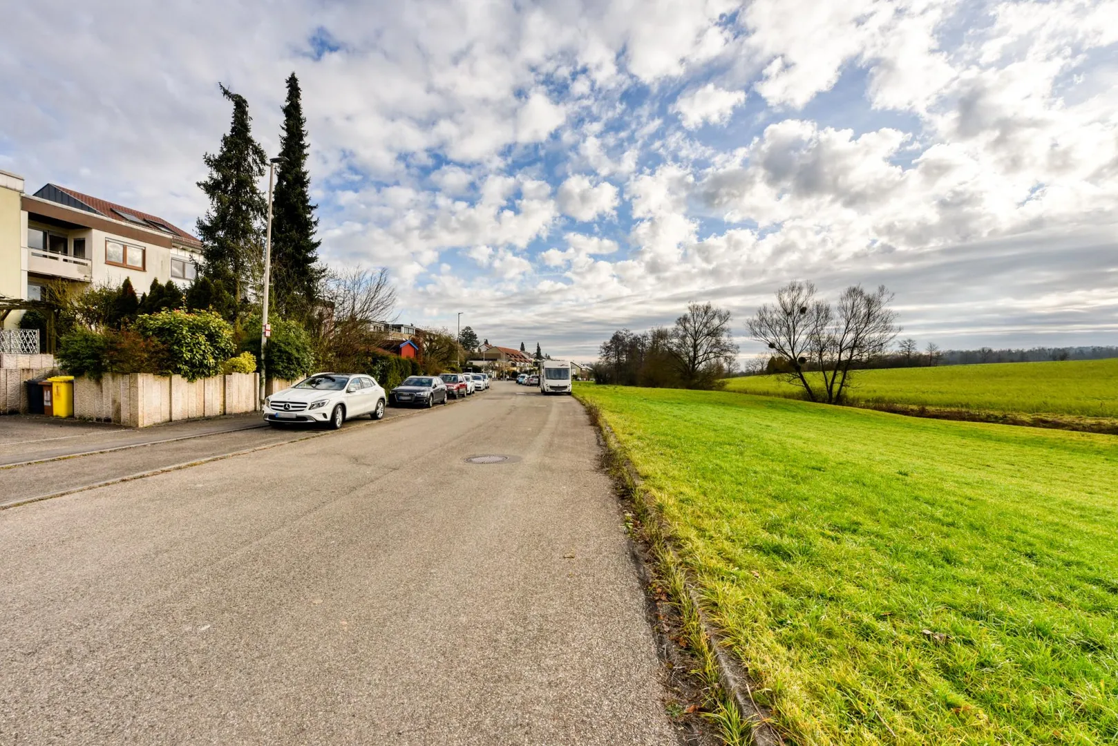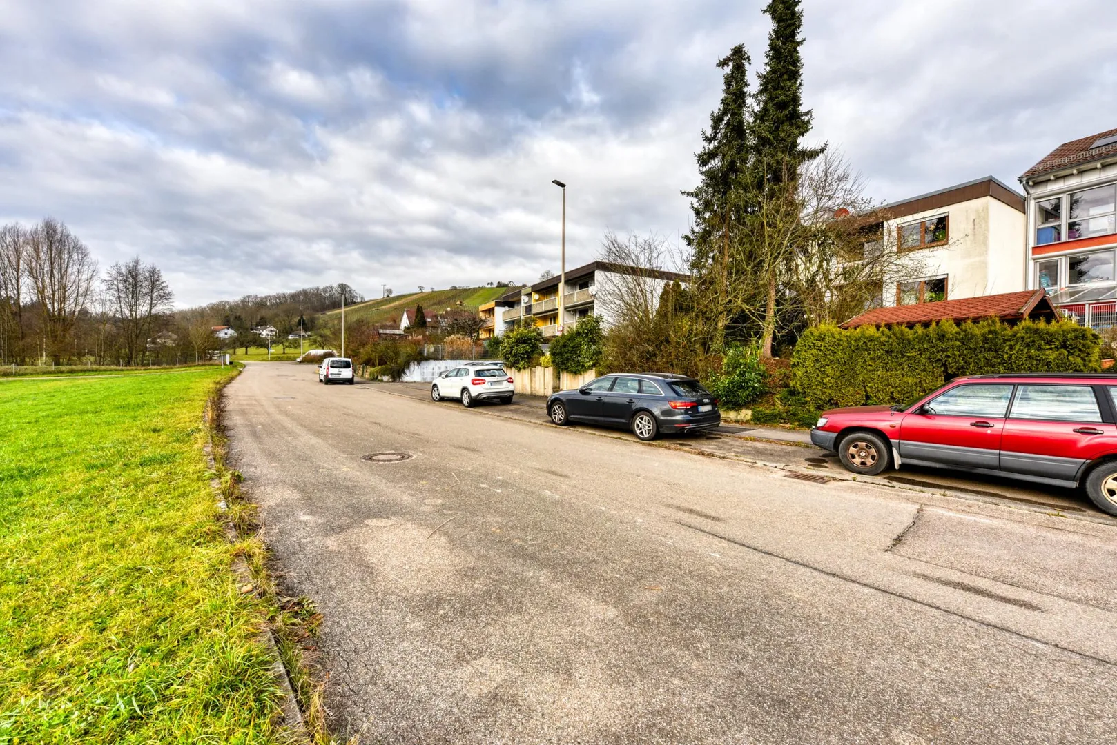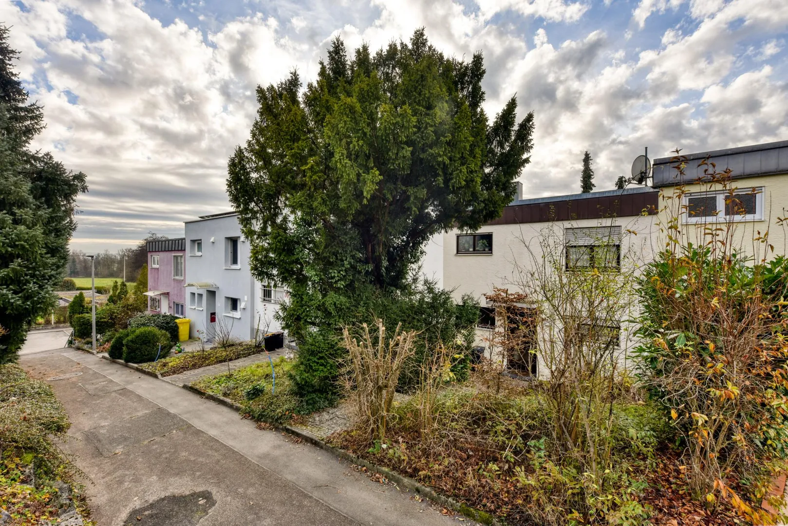 Das Grundstück ist rechteckig, nach Süd-Westen ausgerichtet und nach Süd-Westen abfallend. Der Hauseingang befindet sich auf der Nord/Ost-Seite. Dort befinden sich ein Gehweg sowie der Vorgarten. Vom Gehweg sind es 7 Stufen runter ins Haus. Das Grundstück ist ebenfalls von der Straßenseite (Süd/West-Seite) begehbar.