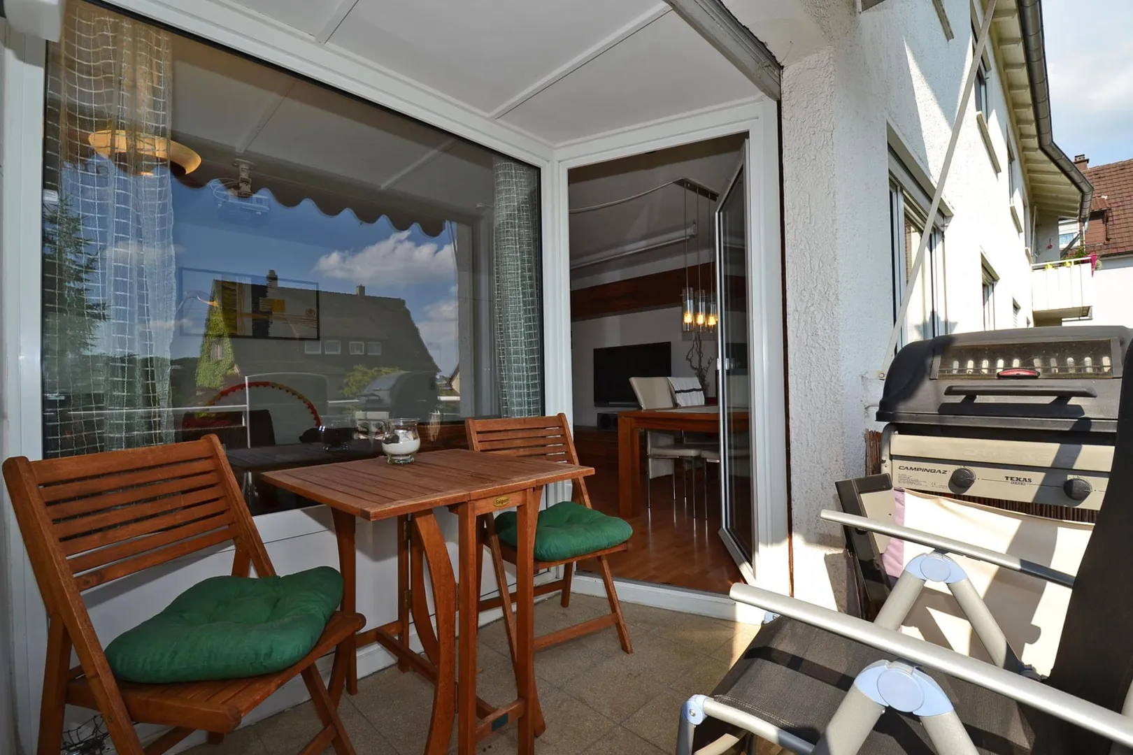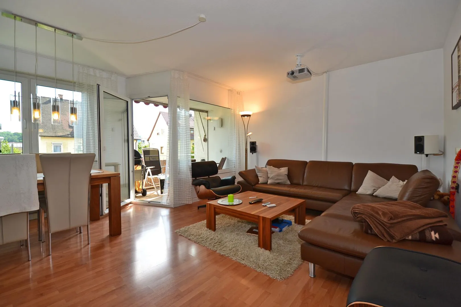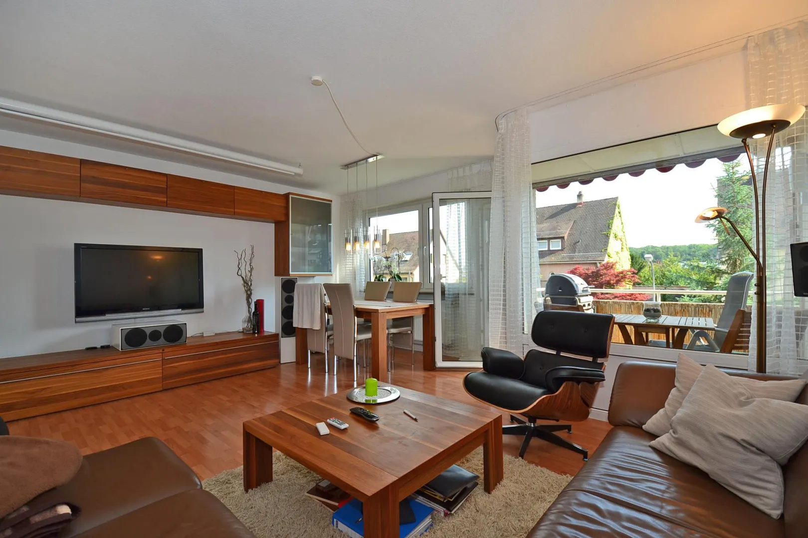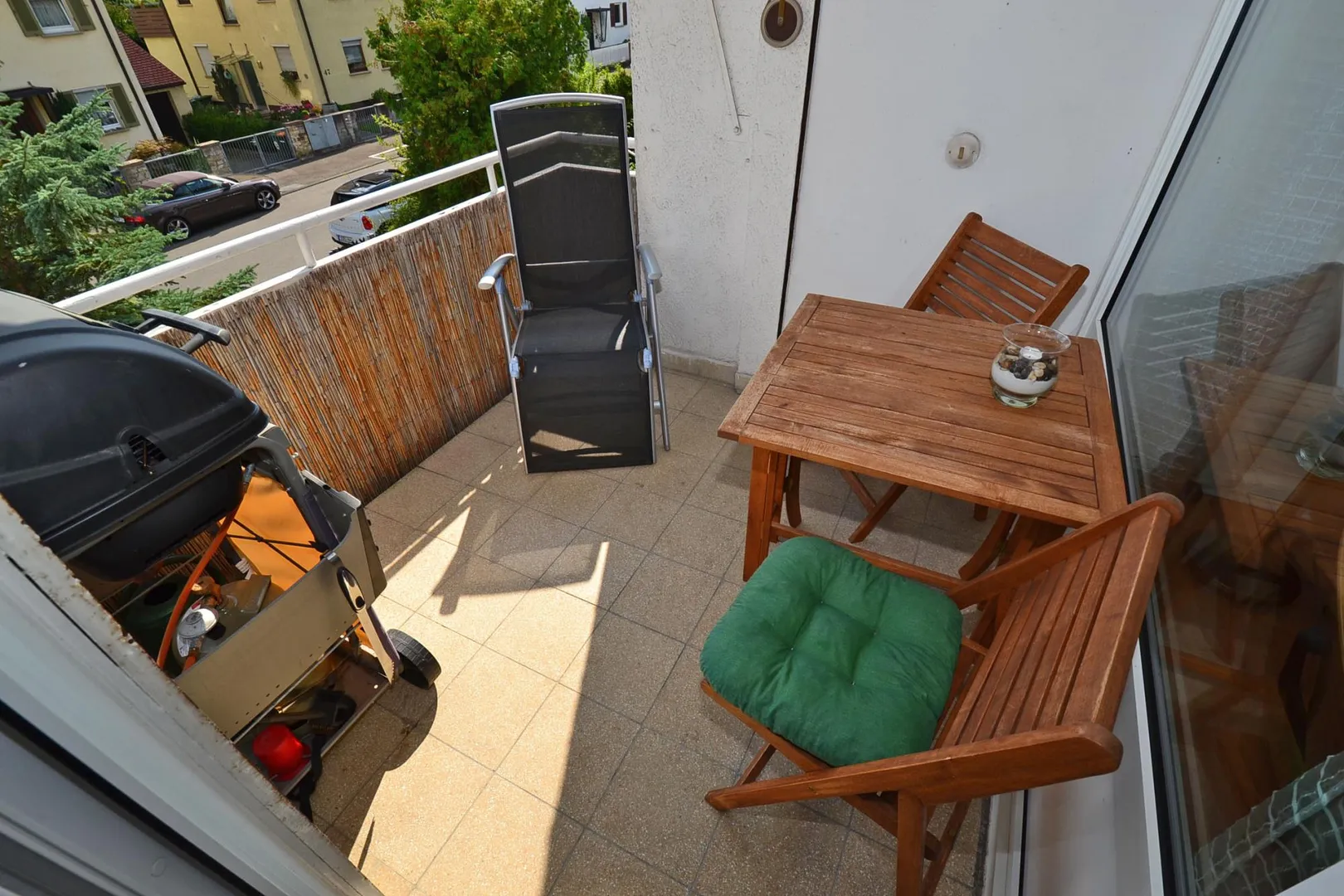 Vom Wohnzimmer gelangen Sie auf den kompakten, sonnigen und überdachten Süd-Balkon.