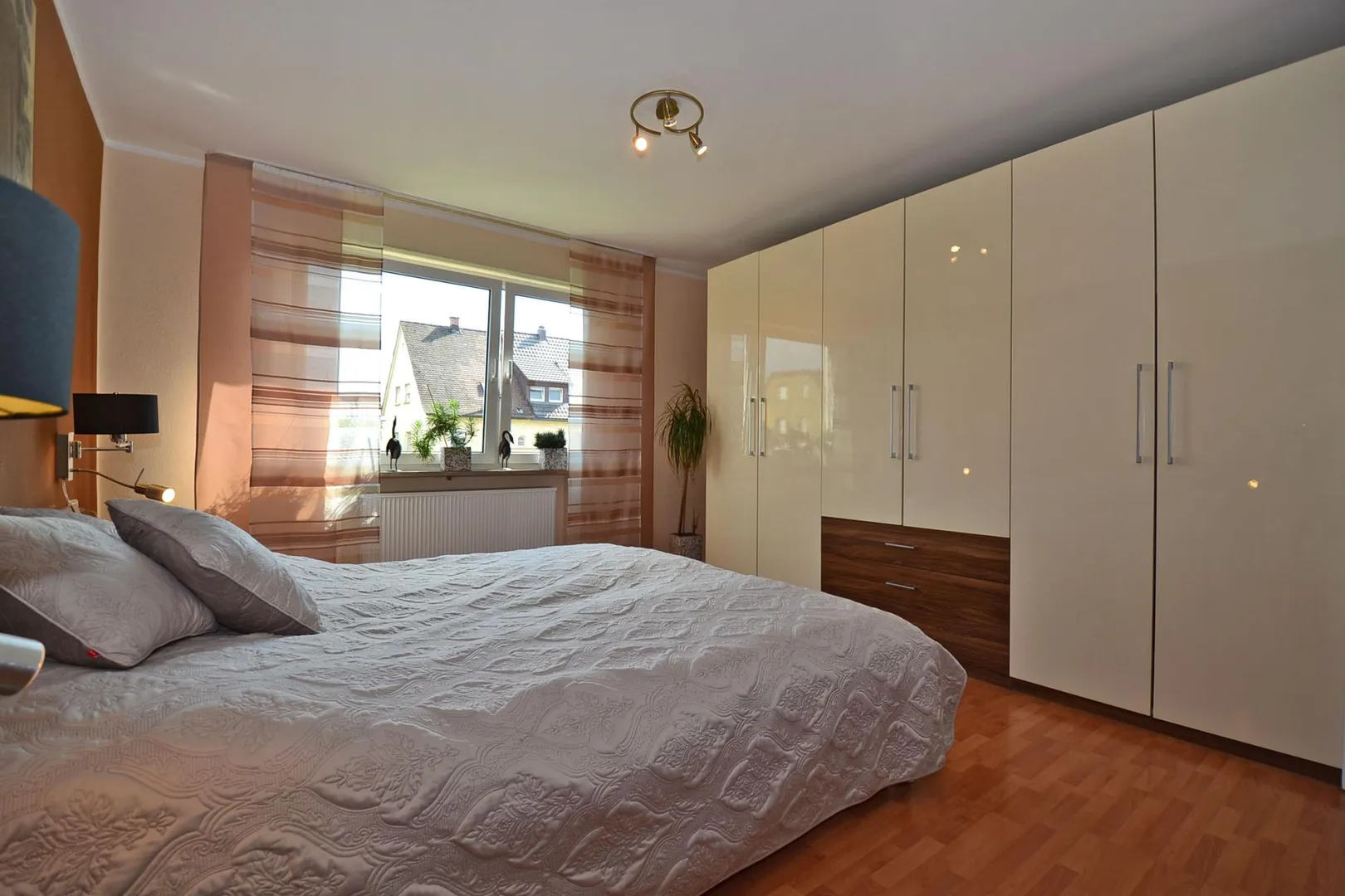 Das Wohnzimmer und das Schlafzimmer sind sonnig hell nach Süden ausgerichtet, das dritte Zimmer nach Westen.