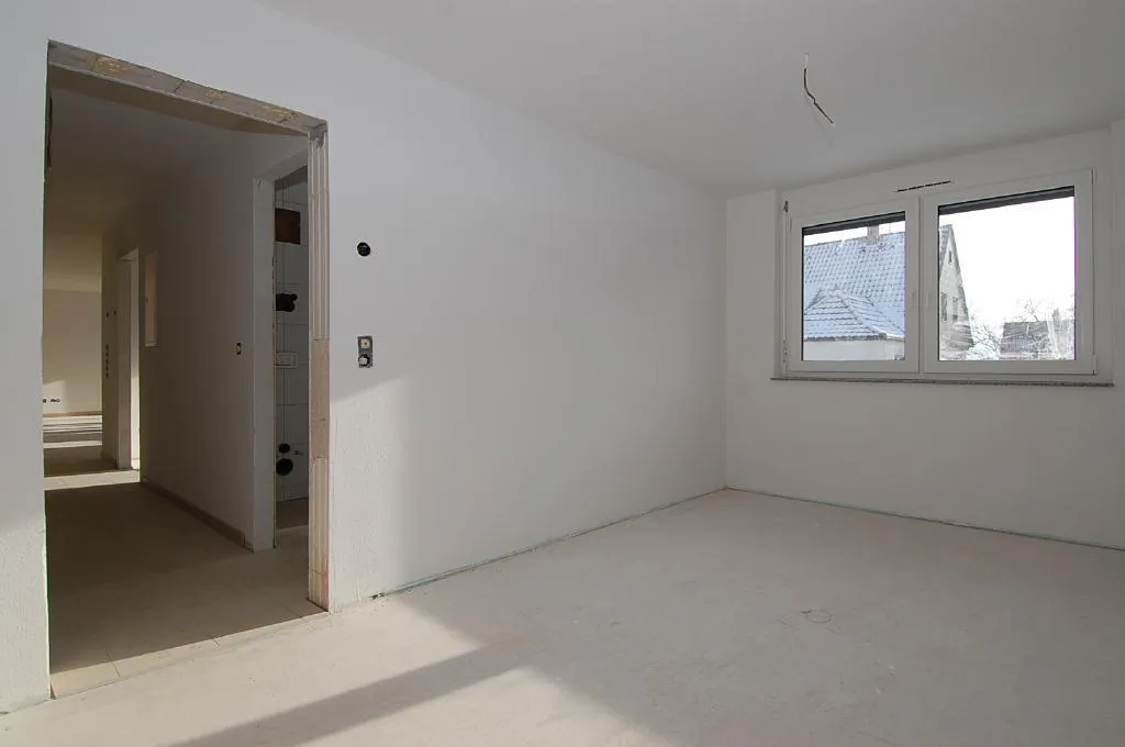 Alle Wohnräume sind mit Raufaser tapeziert und frisch gestrichen.