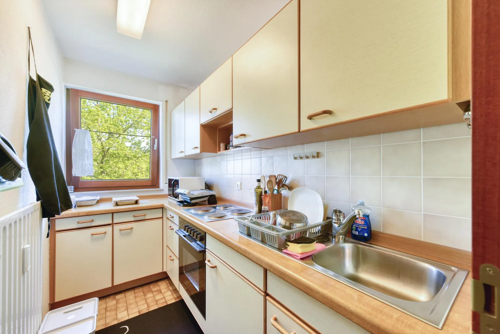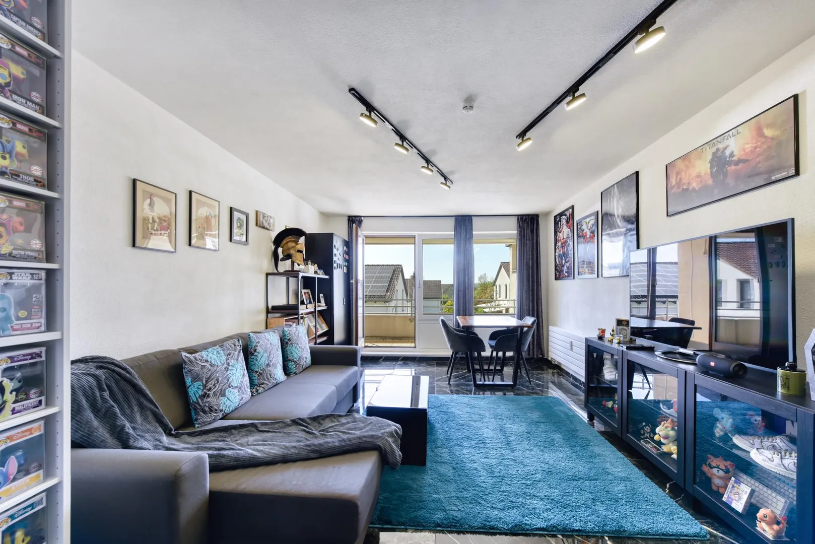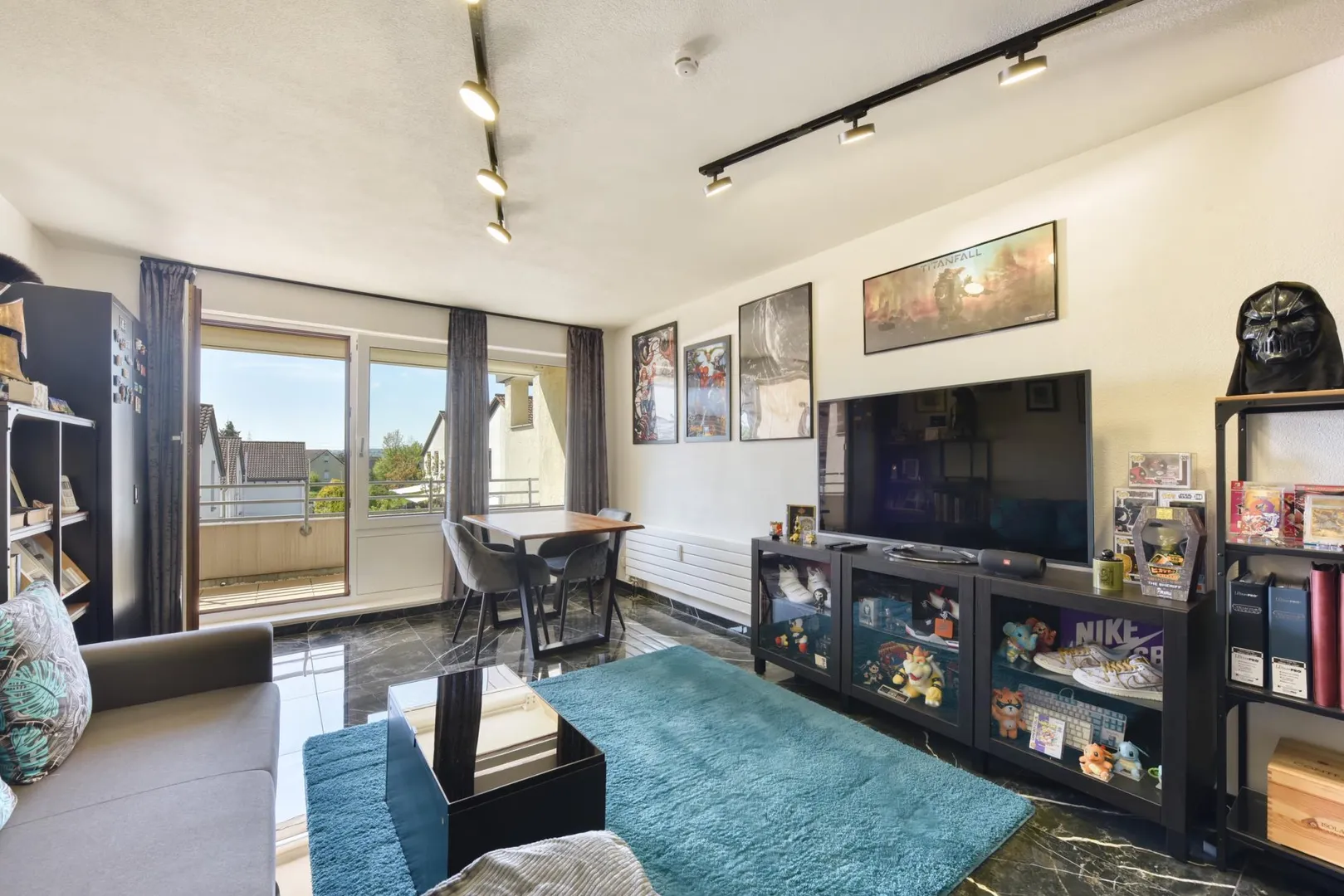 Diese helle, sonnige und gemütliche 2-Zimmer-Wohnung mit West-Balkon befindet sich im 1. Obergeschoss.