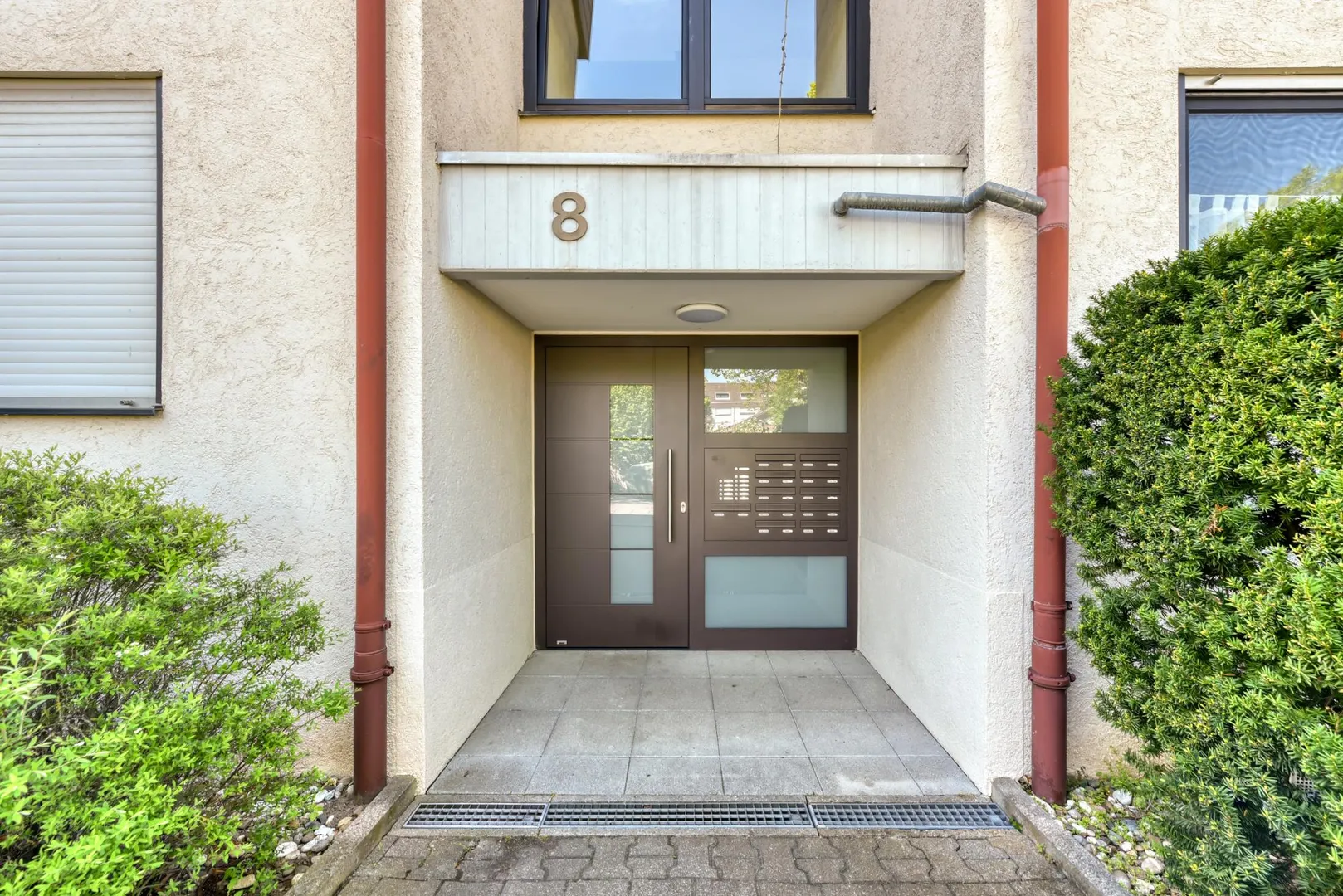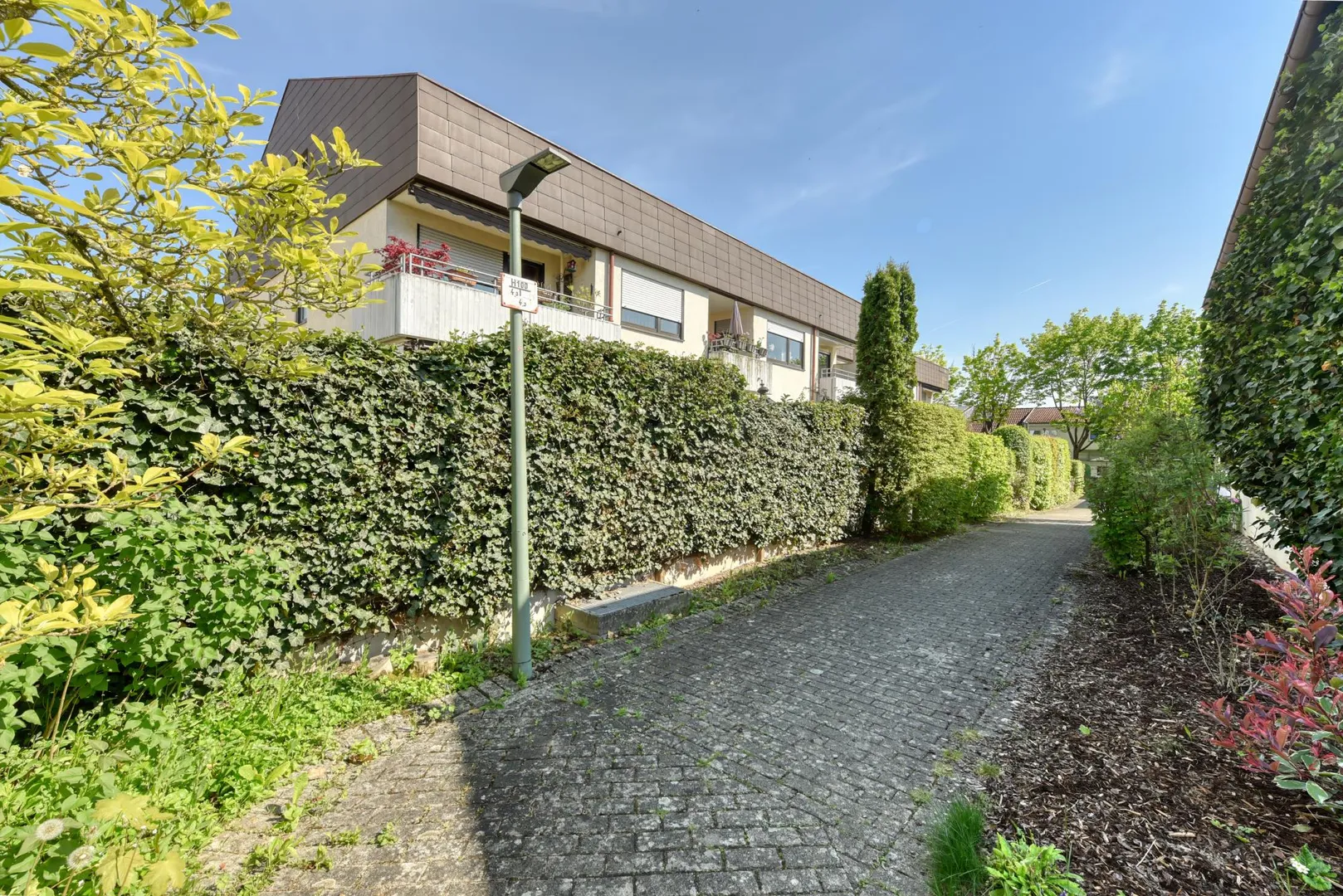 Diese helle, sonnige und gemütliche 2-Zimmer-Wohnung mit West-Balkon befindet sich im 1. Obergeschoss einer 11-Familien-Doppelhaushälfte.