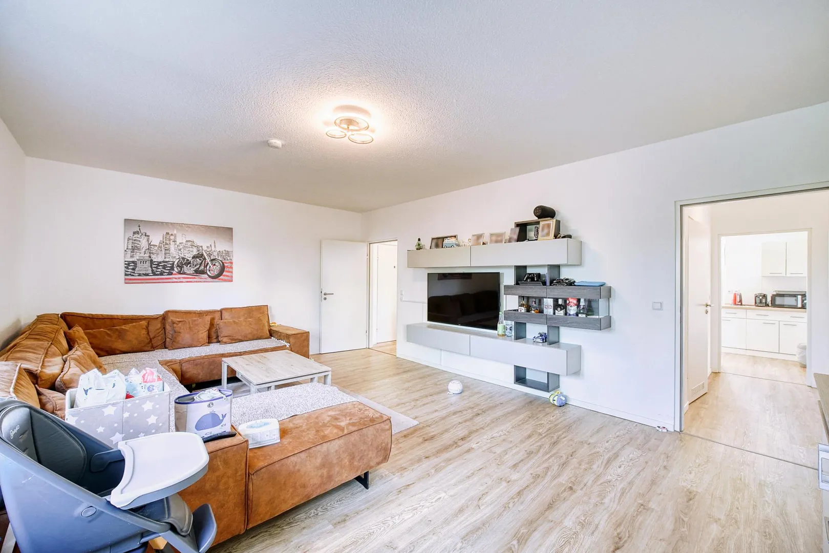 Das Wohnzimmer sowie das Kinderzimmer sind nach Westen ausgerichtet.
