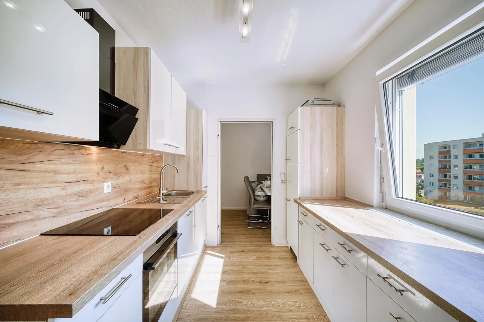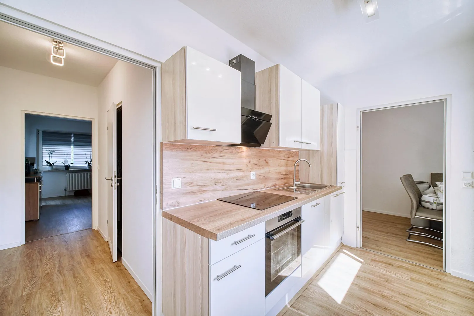 2019 wurde neuer Vinyl-Design-Boden in den Zimmer, in den Fluren, im Abstellraum sowie in der Küche verlegt. Die Böden im Badezimmer sowie im WC sind gefliest.