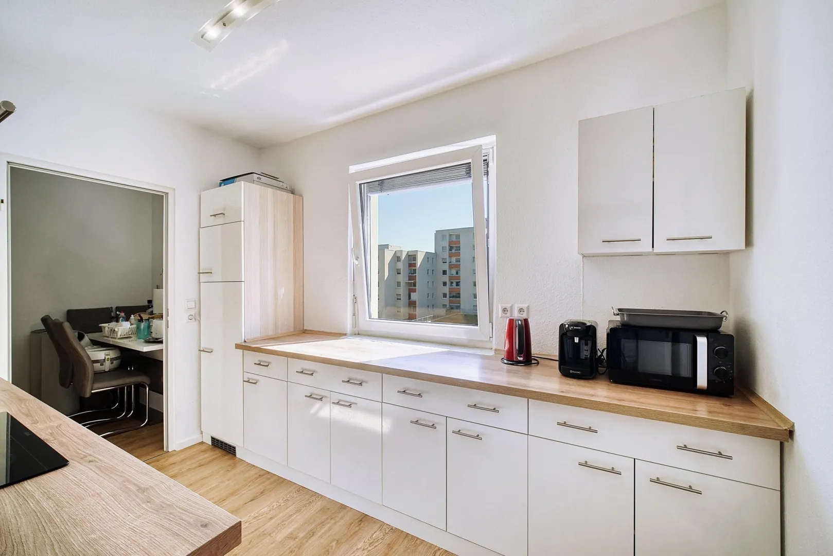 Der Vormieter hat eine ca. 3 Jahre alte Einbauküche eingebaut. Diese kann vom Vormieter für 1.000 EUR (VB) übernommen werden.