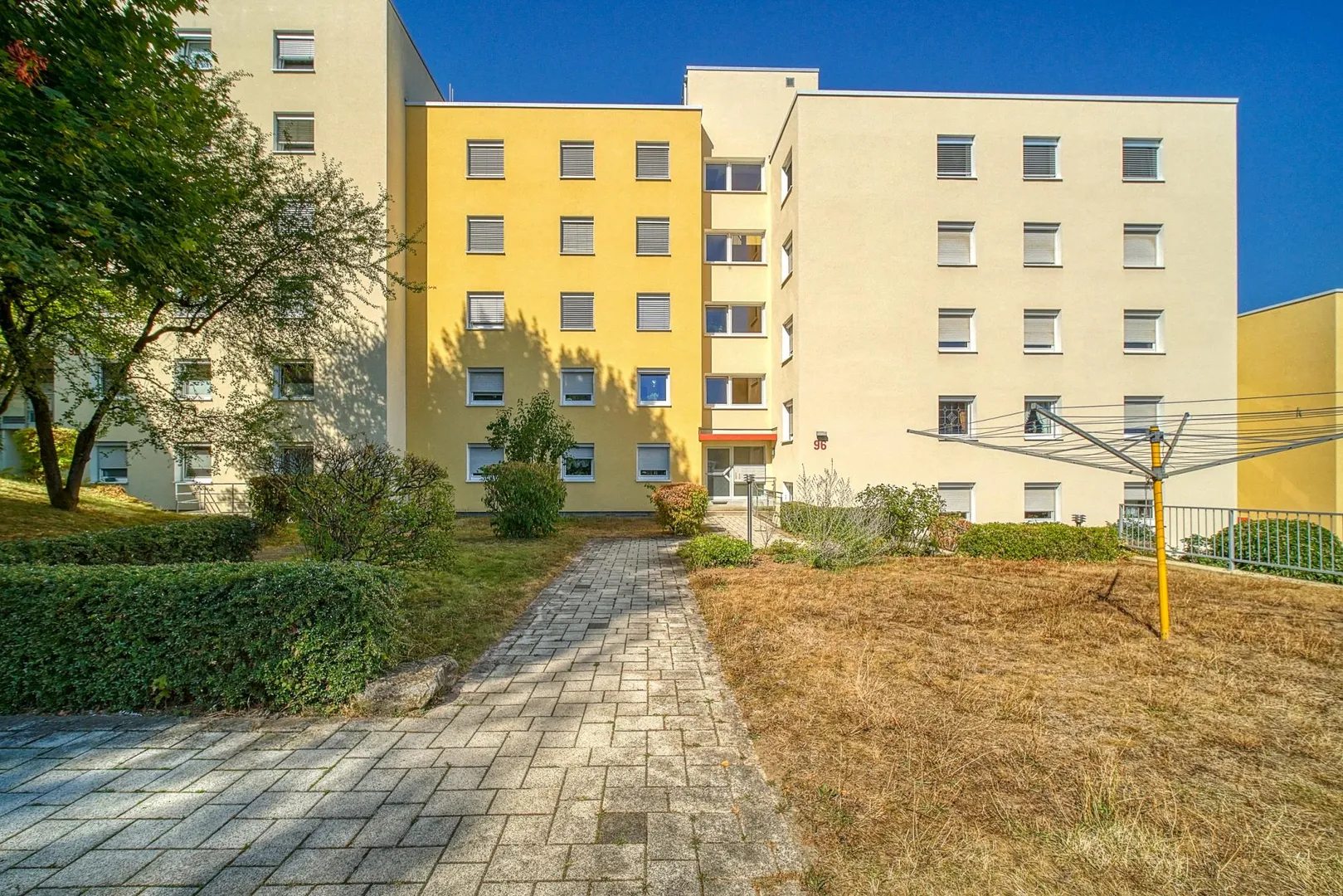 Diese großzügige und gemütliche 3 1/2-Zimmer-Wohnung befindet sich im 2. Obergeschoss eines 15-Familien-Reihenmittelhauses.