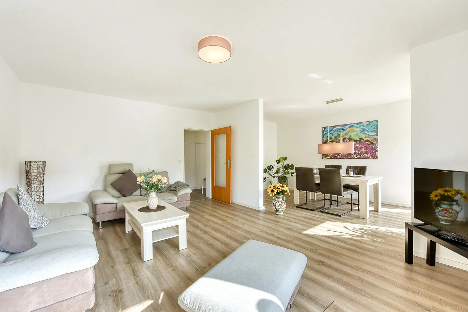 Die Wohnung wurde 2018 umfangreich modernisiert. Es wurden neue Design-Vinyl-Böden verlegt. Die Wände wurden mit Malervlies tapeziert und weiß gestrichen.