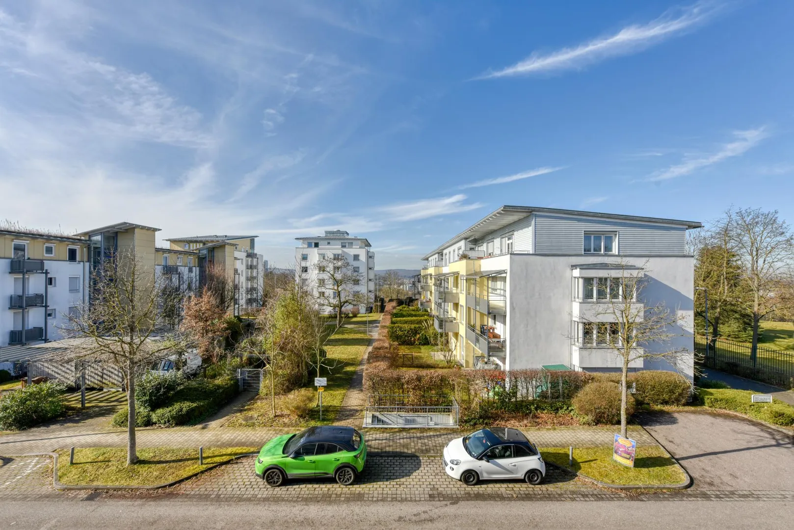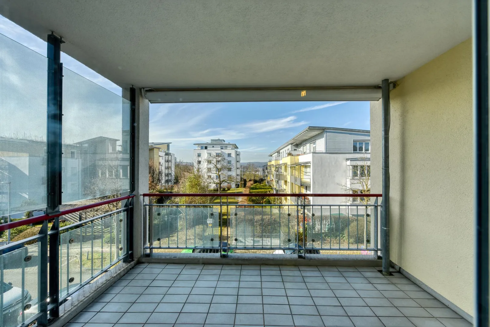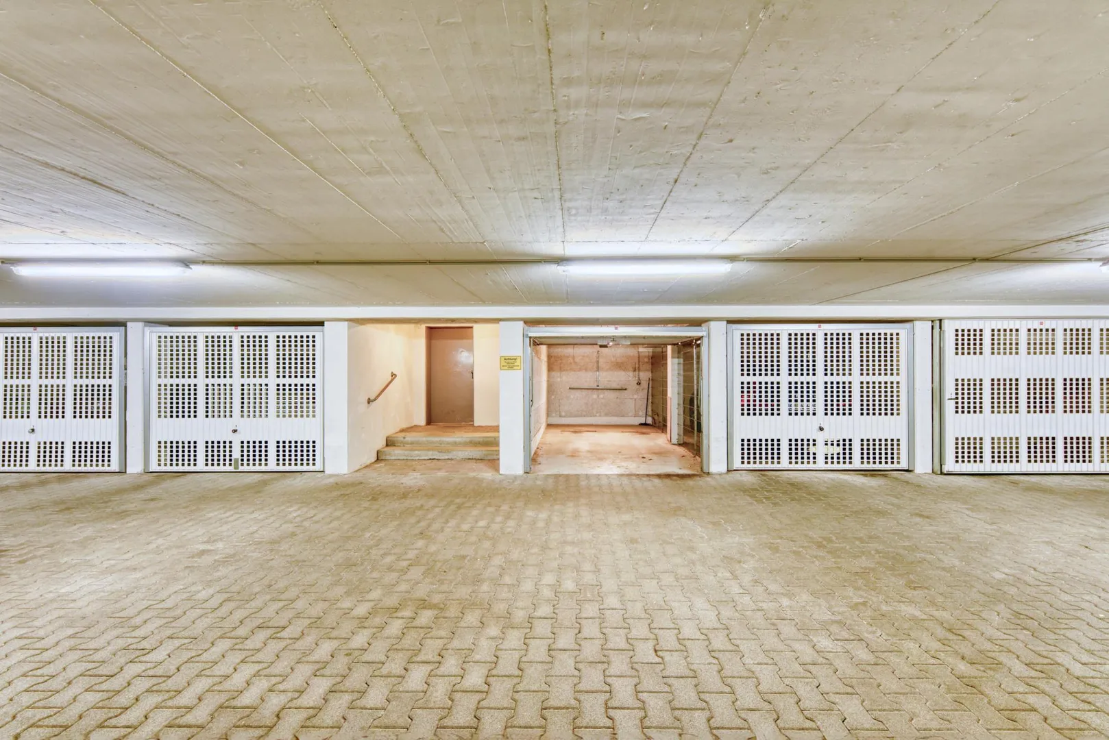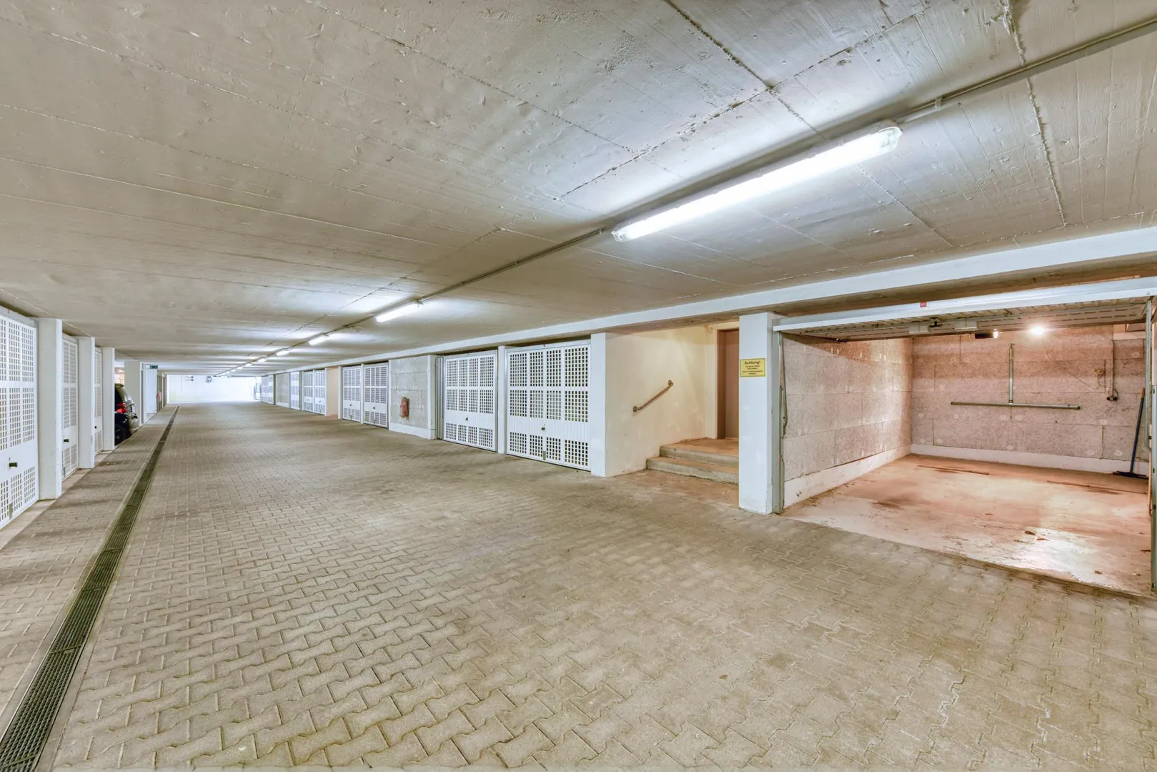 Zur Wohnung gehören ein 6 m² großer Abstellraum im Untergeschoss sowie eine Tiefgaragen-Box mit elektrischem Torantrieb. Die TG-Box ist mit 90 EUR monatlich bereits in der Angabe der Kaltmiete enthalten.