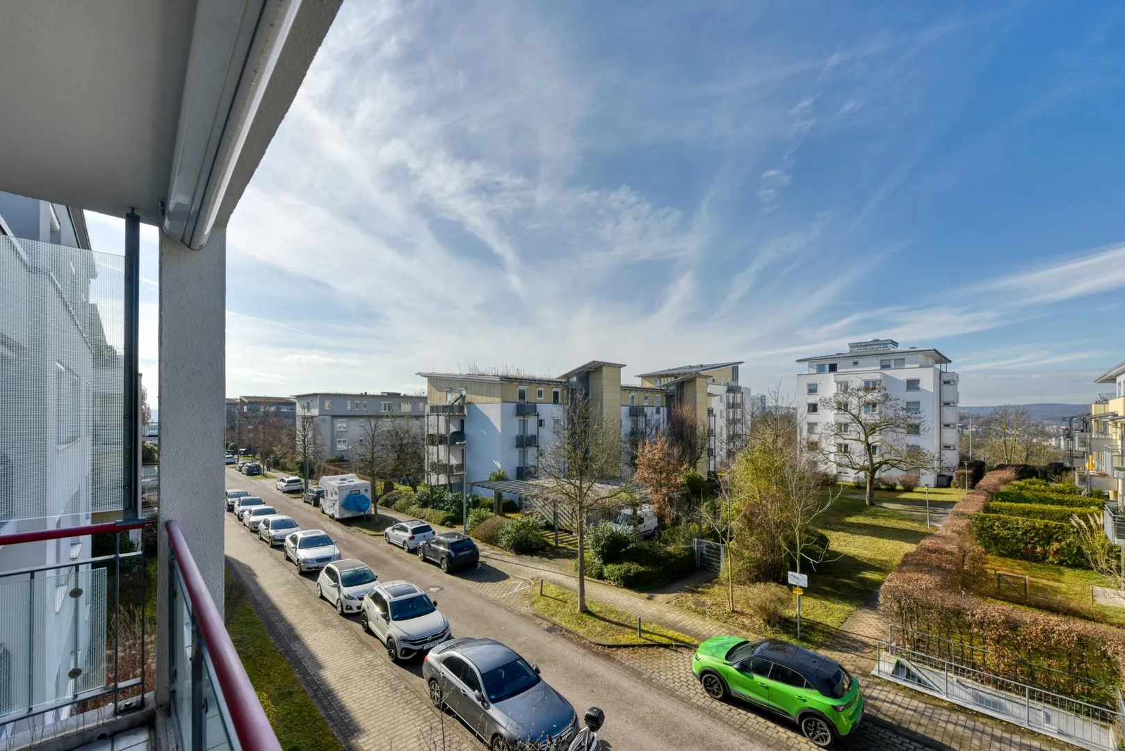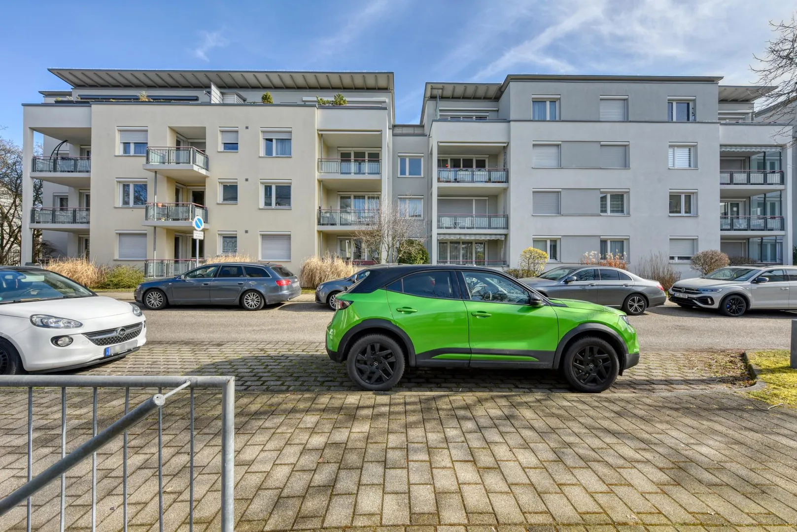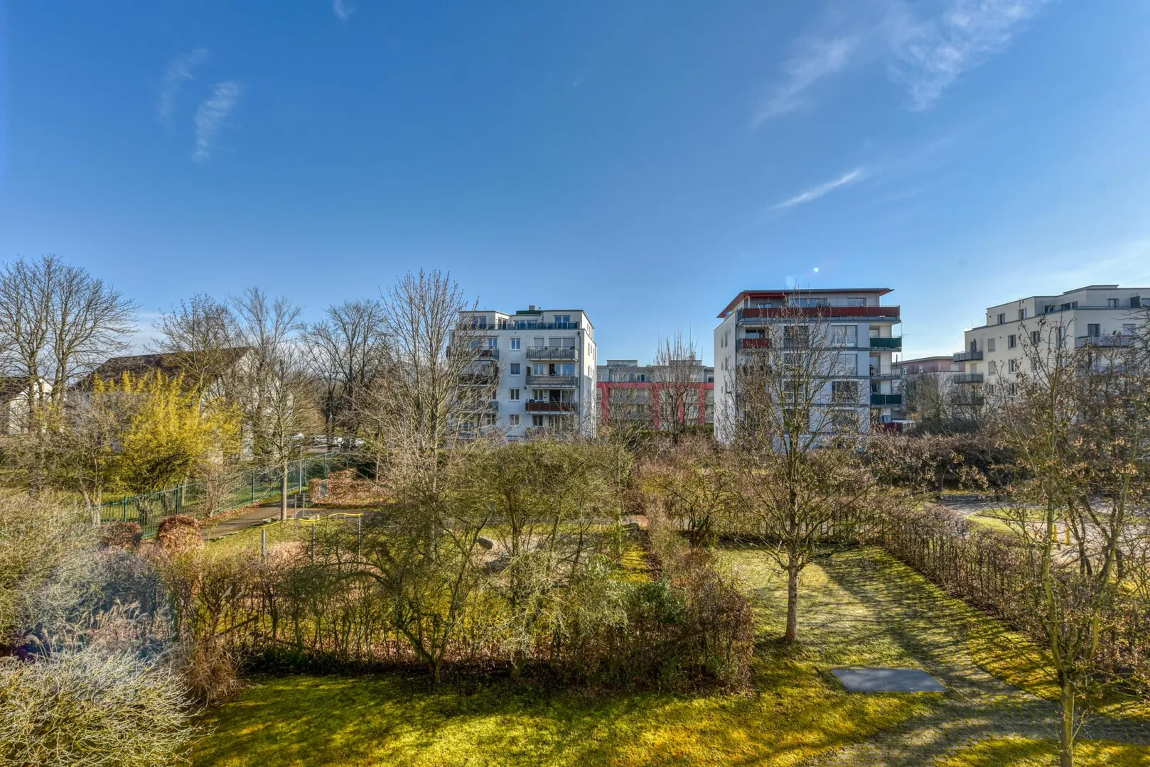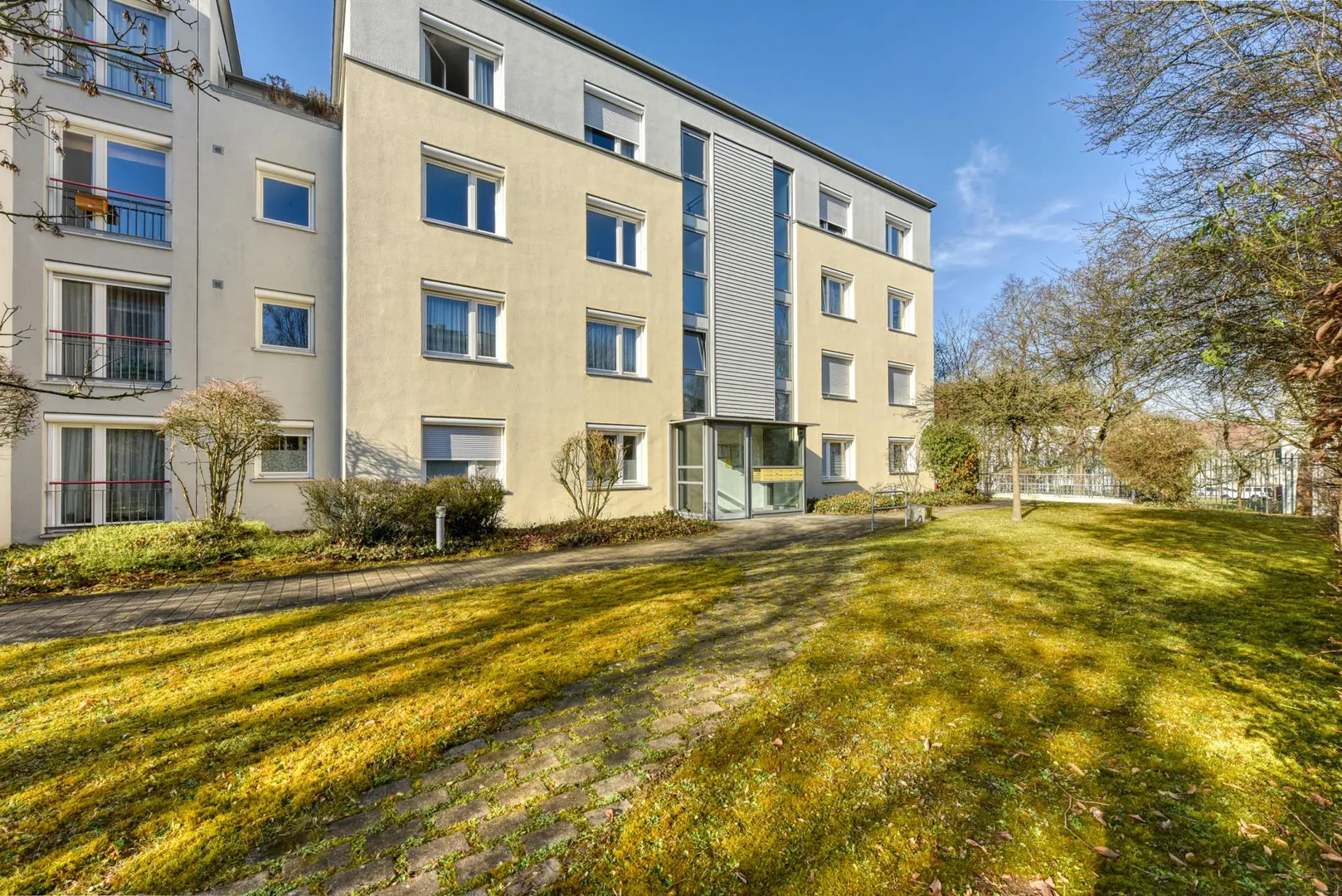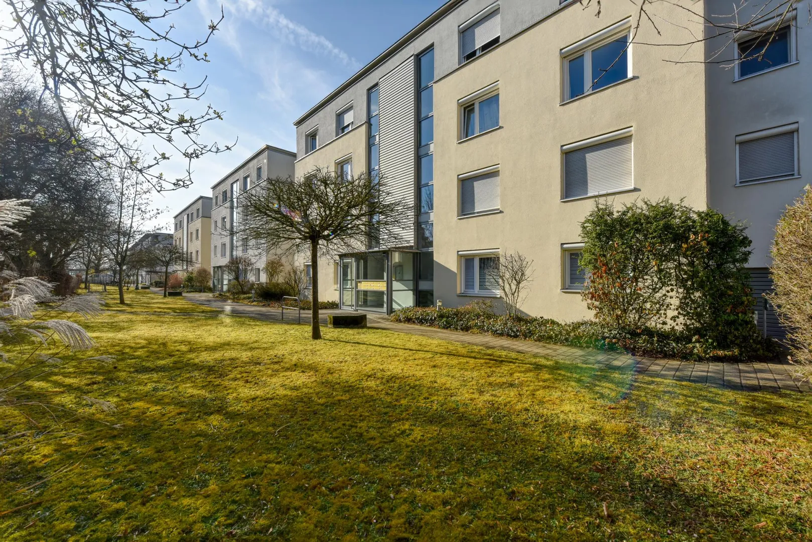 Zur Wohnung gehören ein 6 m² großer Abstellraum im Untergeschoss sowie eine Tiefgaragen-Box mit elektrischem Torantrieb. Die TG-Box ist mit 90 EUR monatlich bereits in der Angabe der Kaltmiete enthalten.