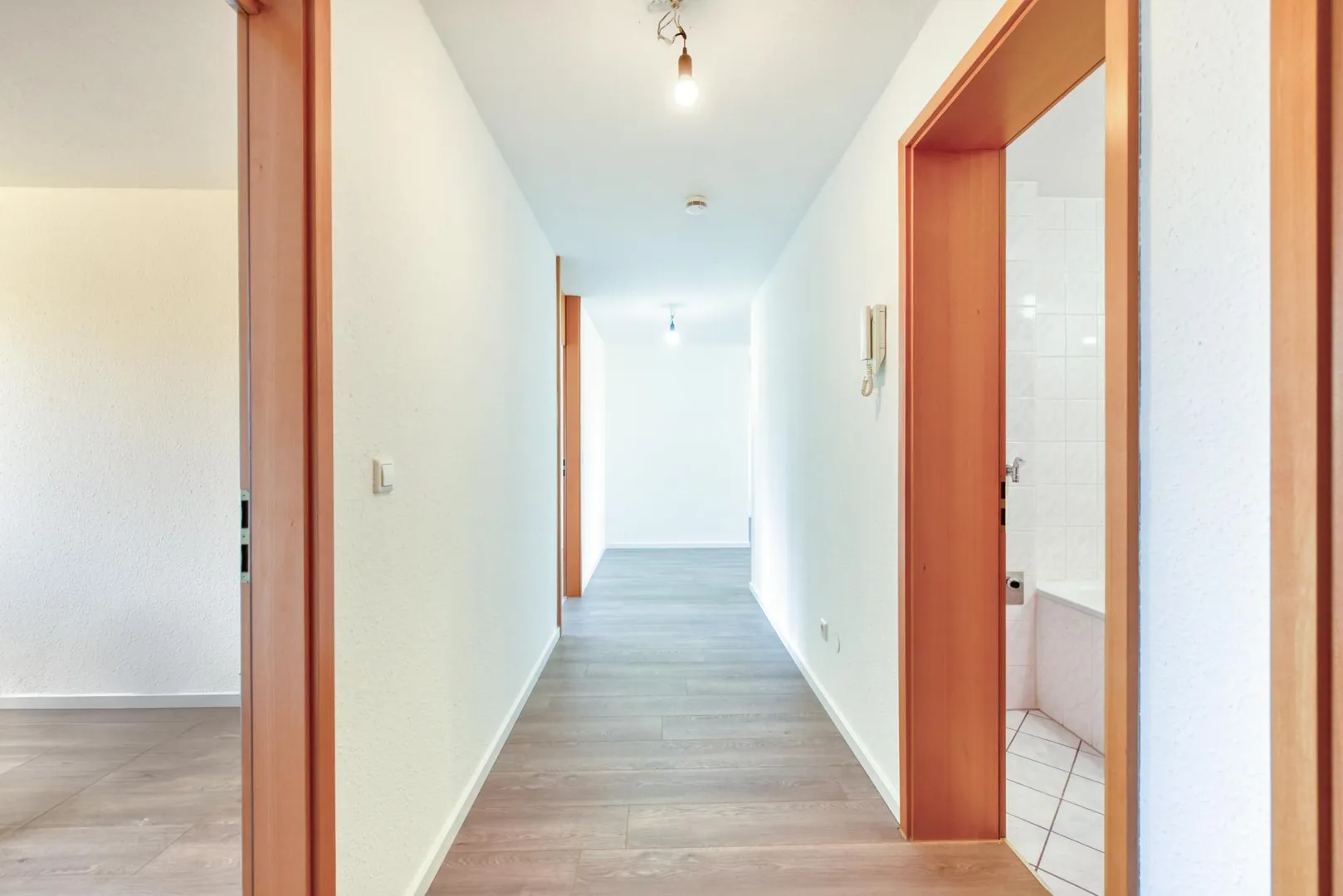 Im Flur sowie in den Zimmern wurde 2025 ein neuer Laminat-Boden verlegt. Die Wände und Decken wurden aktuell frisch, weiß gestrichen. Die Raumhöhen betragen ca. 2,38 Meter.