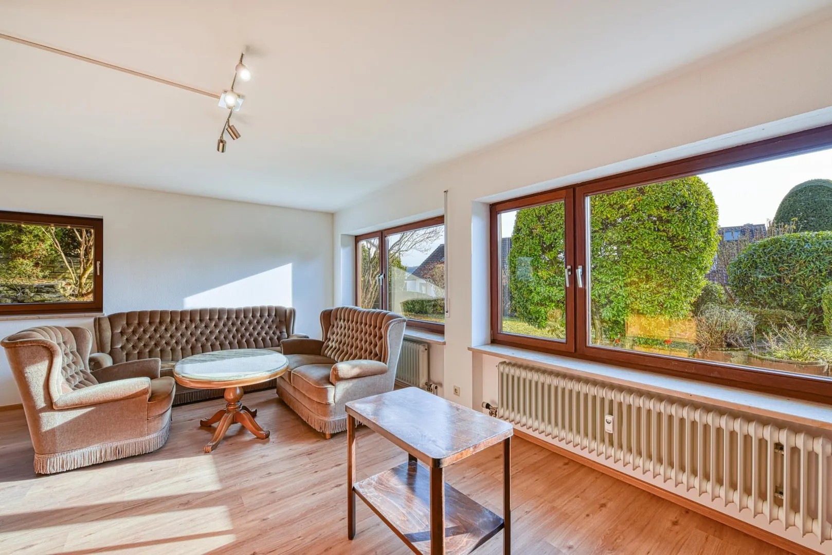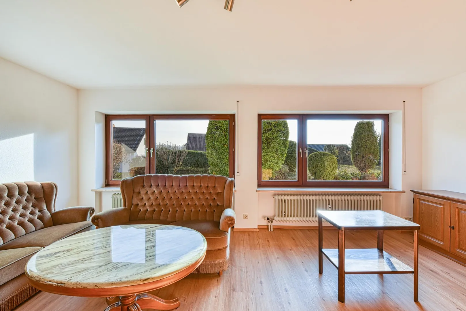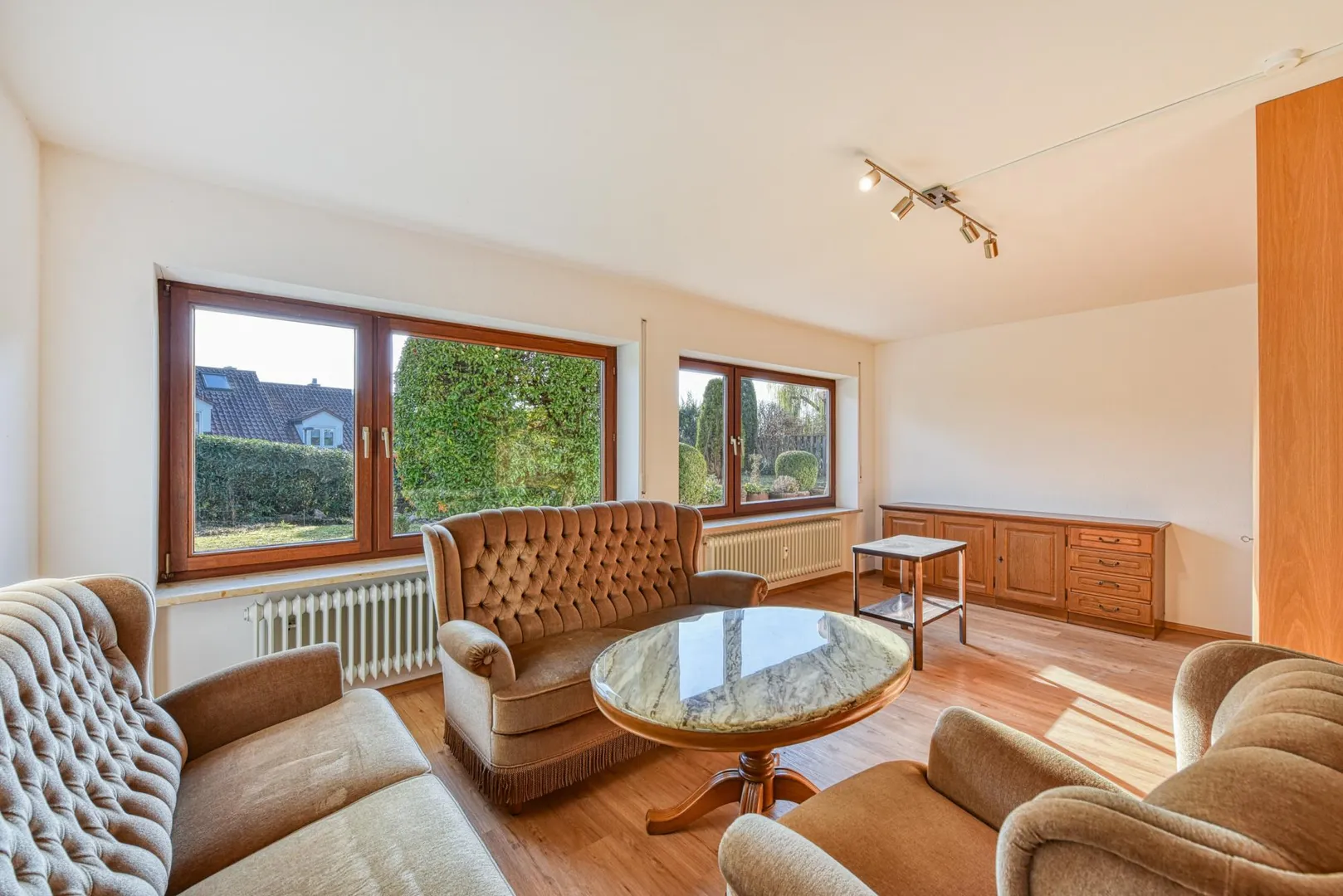Im Außenbereich verfügt die Wohnung über eine ca. 7 m² große Süd-Terrasse als auch über eine ca. 55 m² große Gartenfläche zur alleiniger Nutzung.