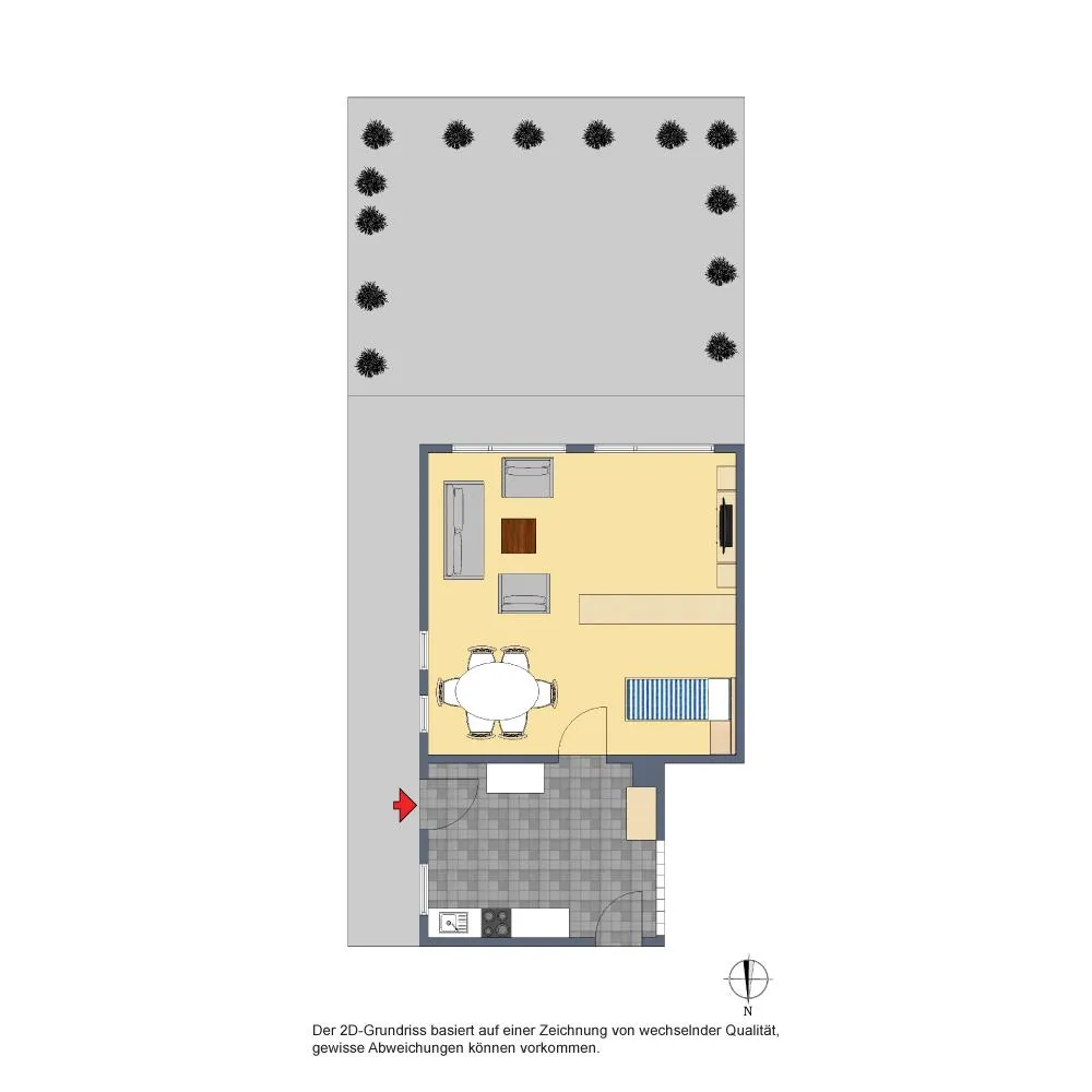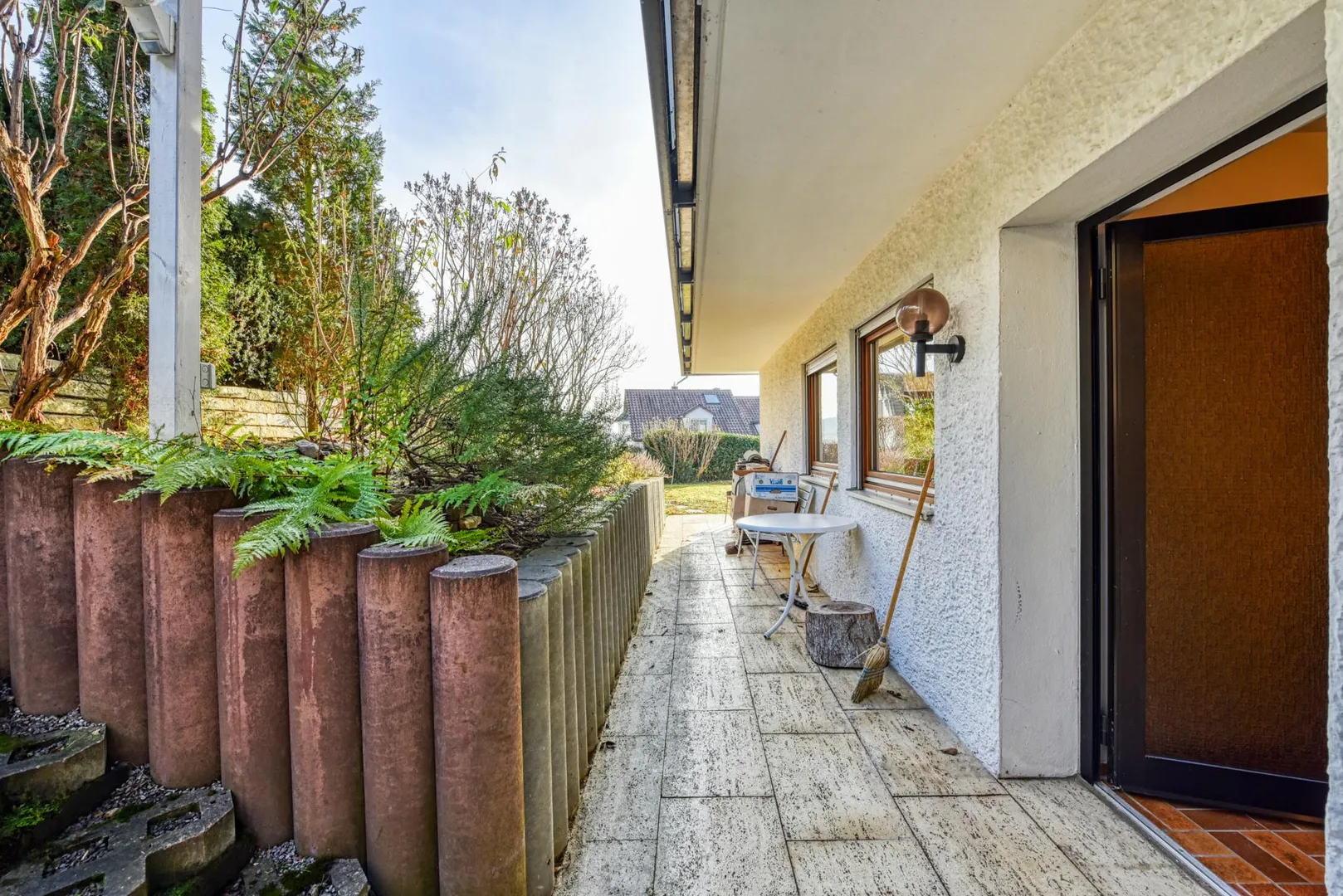Zur Wohnung gehören eine Außen-Terrasse sowie ein Gartenanteil.