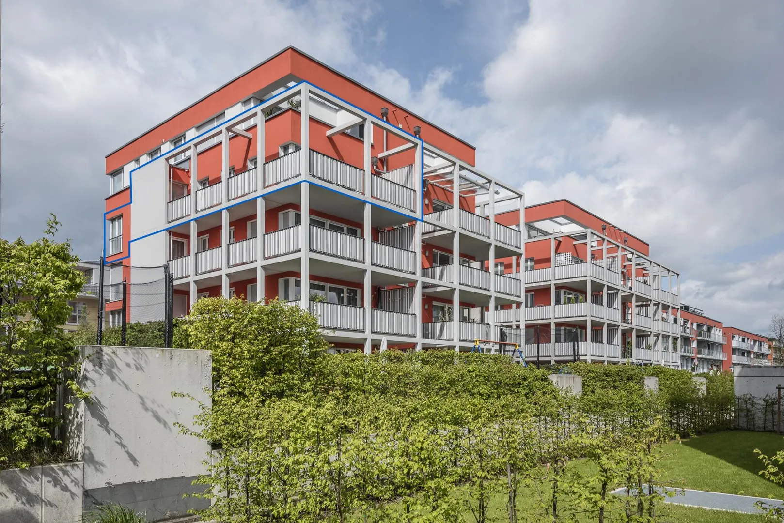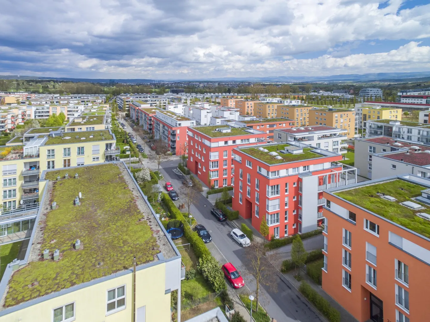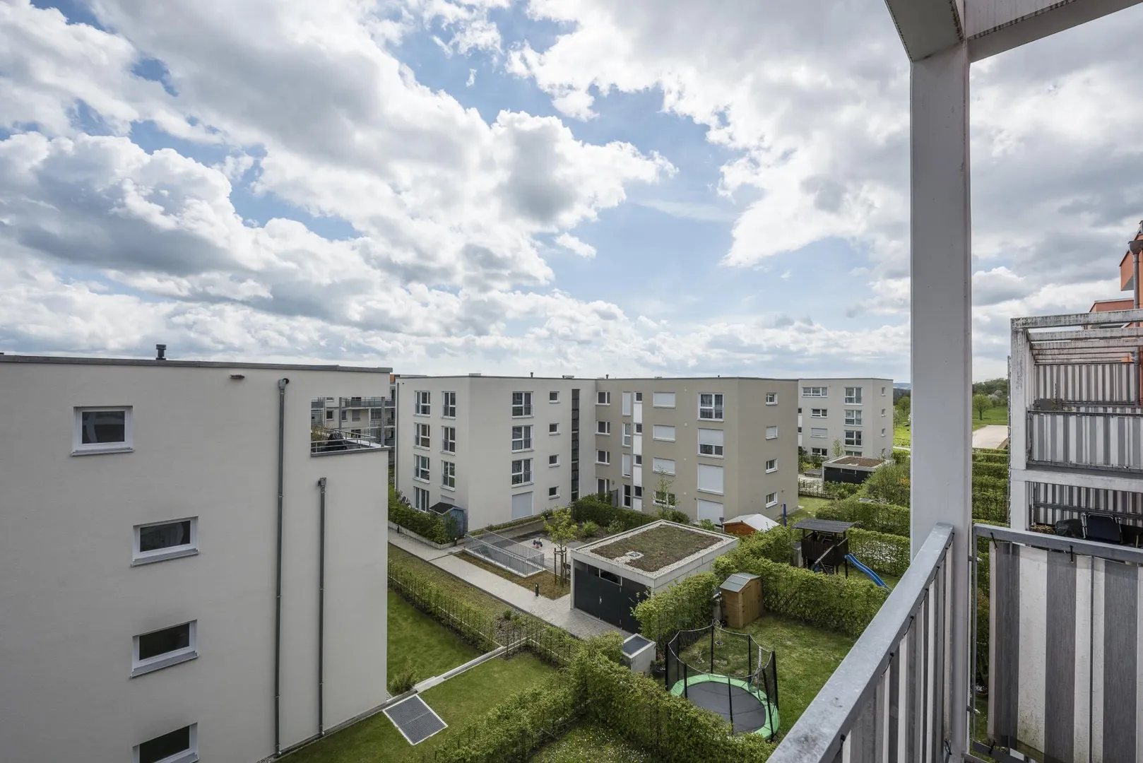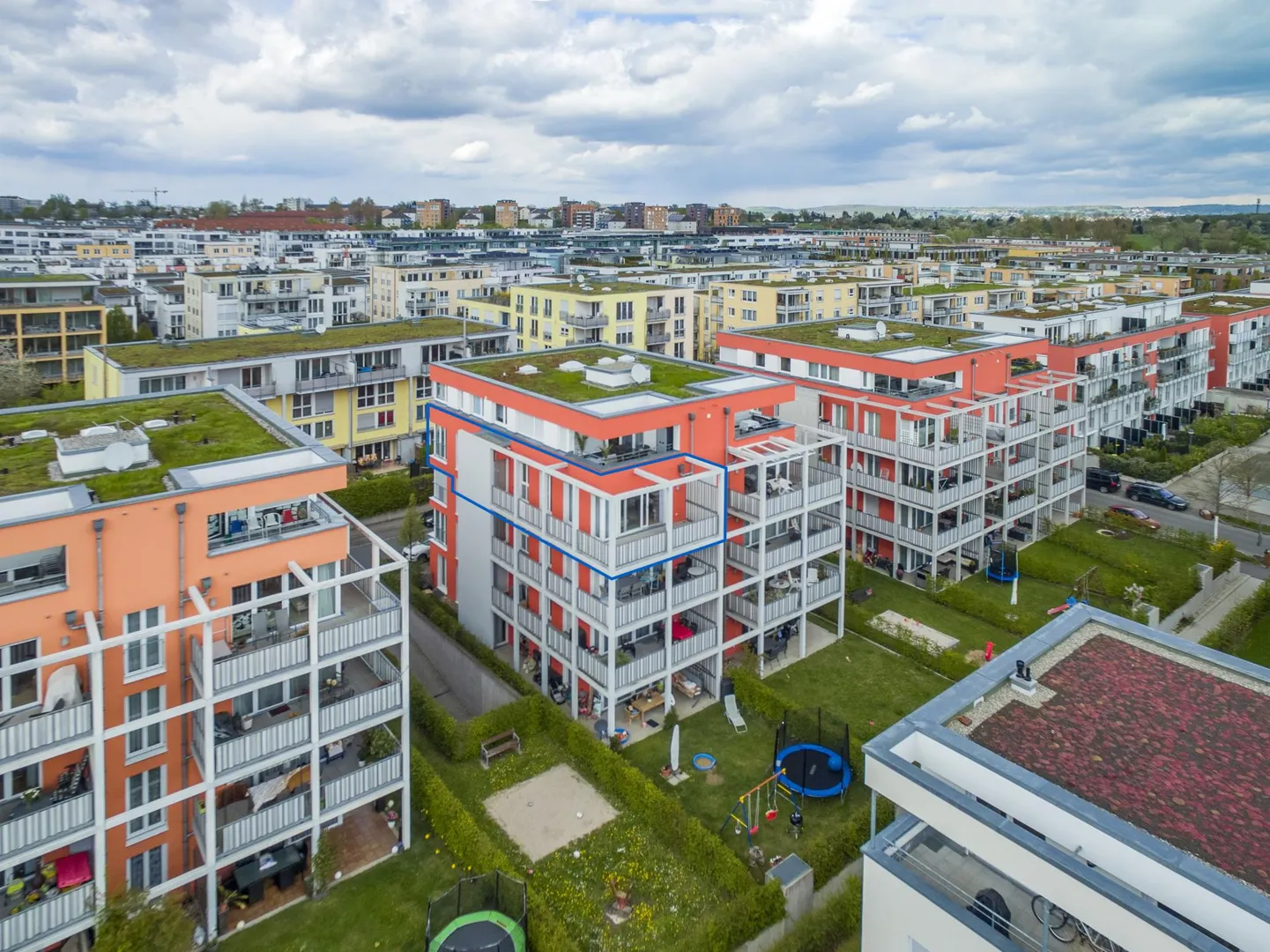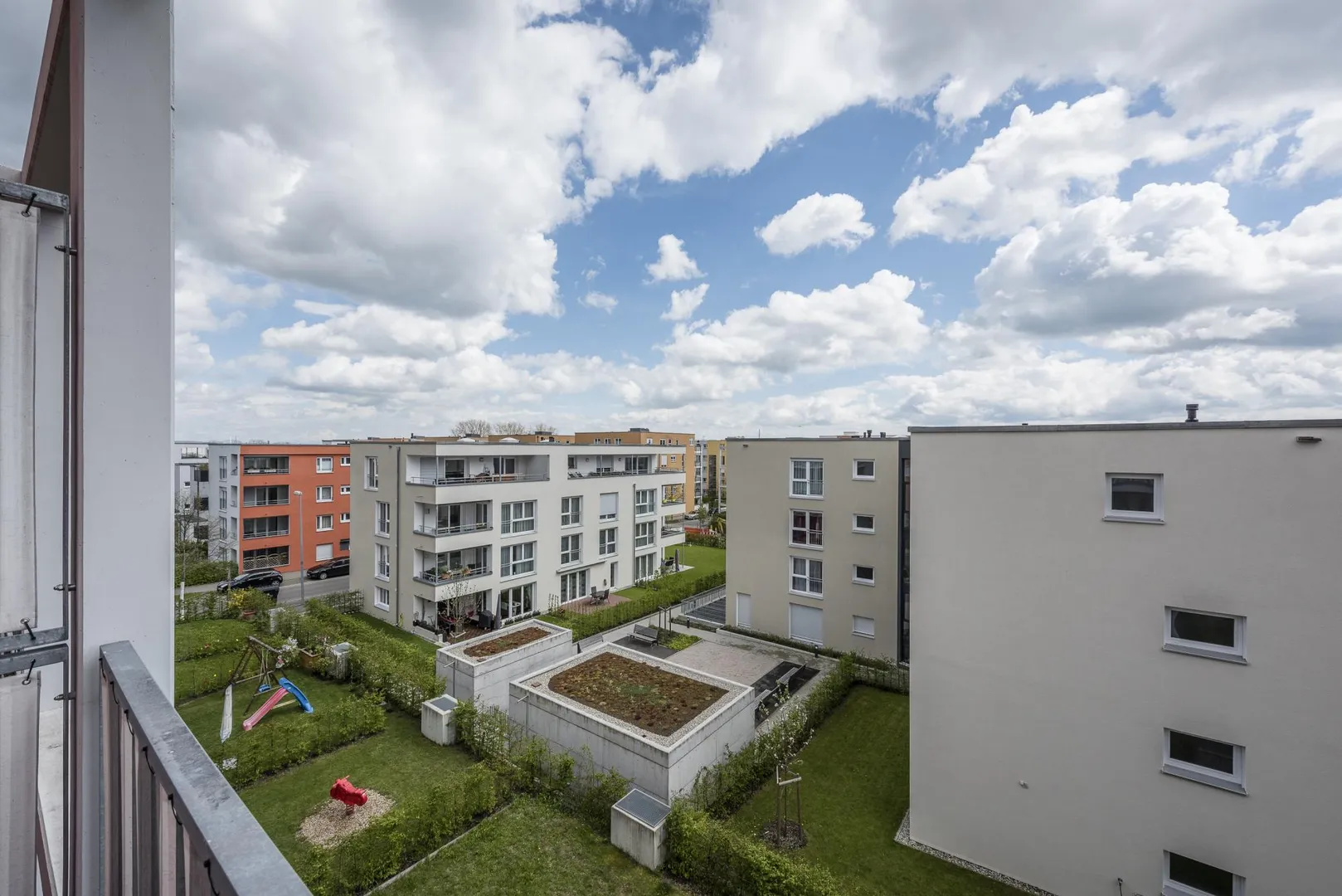 Eine große Spiel- und Freizeitanlage sowie ein sehr großer Grünbereich grenzen direkt an das Wohnviertel an.