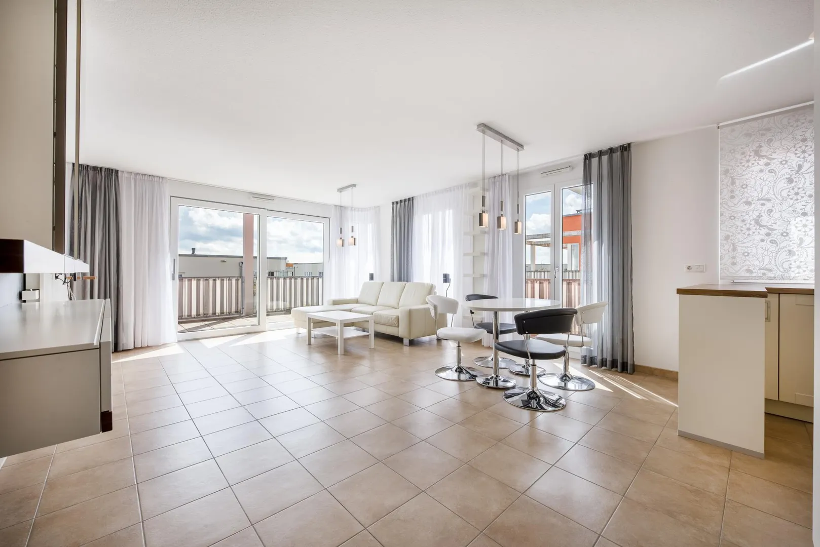 Diese neuwertige, gehoben ausgestattete und teilmöblierte 4-Zimmer-Wohnung befindet sich im 3. Obergeschoss eines Wohnhauses mit 10 Einheiten.