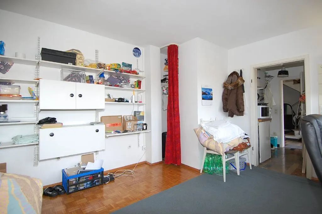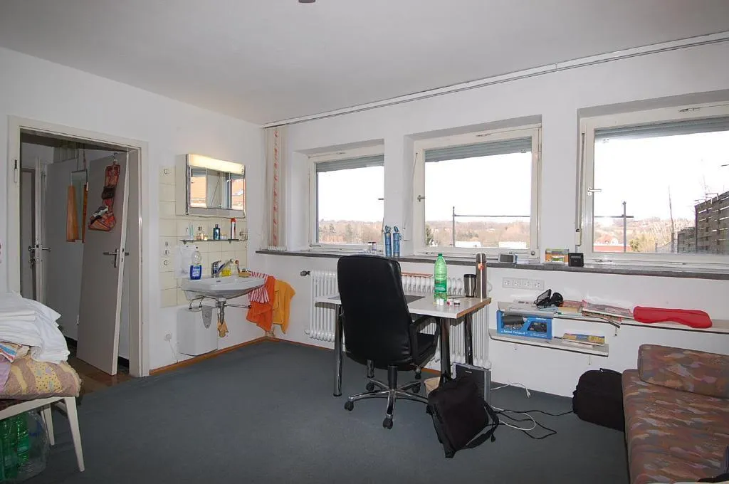 Die Wohnung wird teilweise möbliert vermietet. Zur Ausstattung gehört: ein Schrank, ein Schreibtisch, ein Schreibtischstuhl, 2 Stühle, eine Schlafcouch und ein Waschbecken mit Spiegel. Weiterhin ist die Koch-Nische mit einem Kühlschrank, einer Mikrowelle, einem Toaster und einer kleinen Kochplatte ausgestattet.