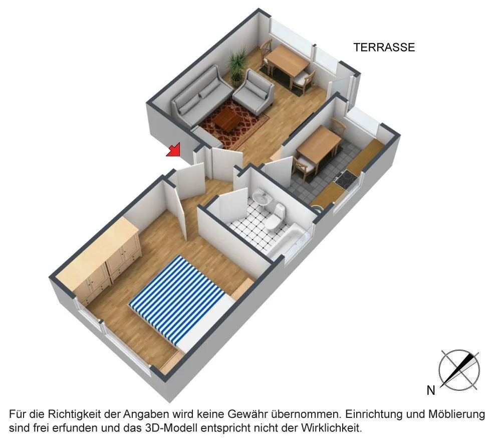 Bitte beachten Sie, dass die Wohnung auf den Bildern größer wirkt als sie eigentlich ist. Die Bilder sollen Ihnen zur Orientierung dienen. Grundrisse und Flächenberechnung liegen dem Exposé anbei.
