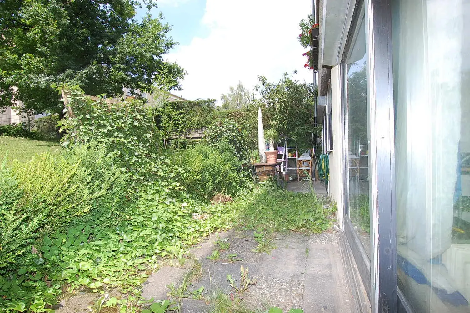 Diese schicke und großzügige 2 1/2-Zimmer-Terrassen-Wohnung befindet sich im Terrassen-Unter-Geschoss eines 20-Familien-Reiheneckhauses.