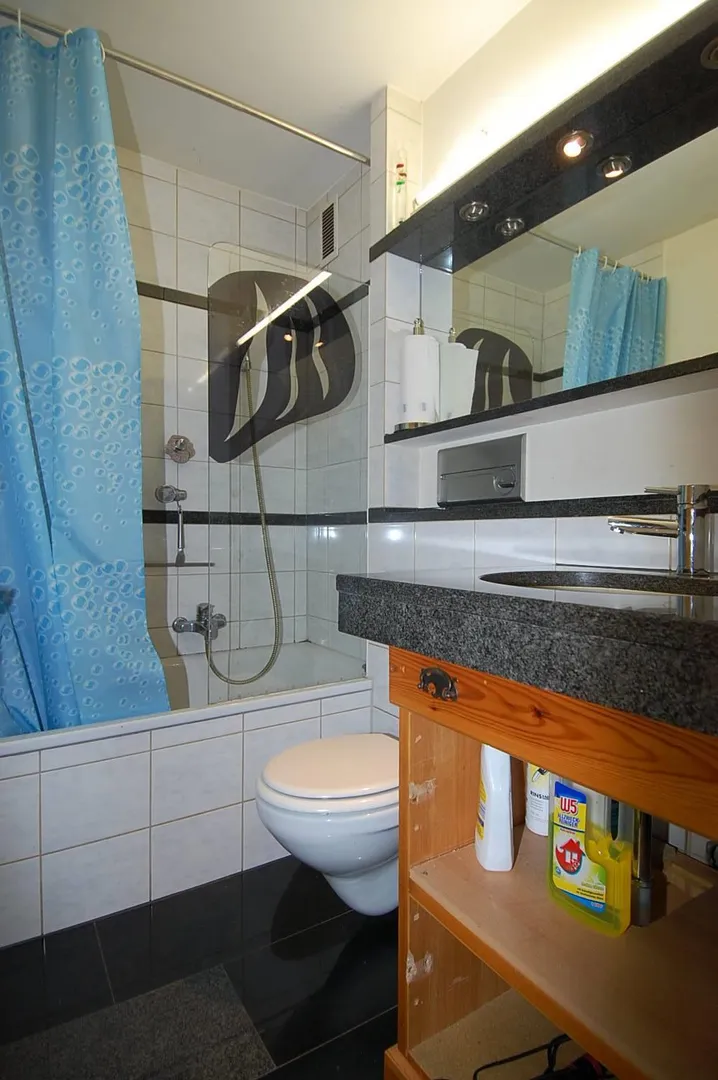 Die Wohnung verfügt über 2 Bäder. Ein Badezimmer ist ausgestattet mit Wanne und WC. Das zweite Badezimmer ist ausgestattet mit Dusche, WC und Waschmaschinenanschluss. Beide Bäder sind mit hochwertigen Granitsteinen ausgestattet.