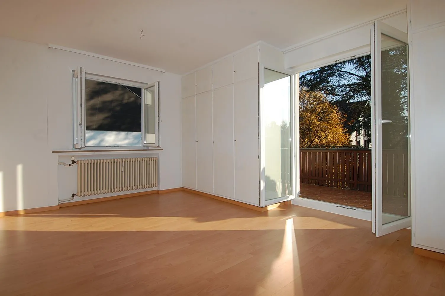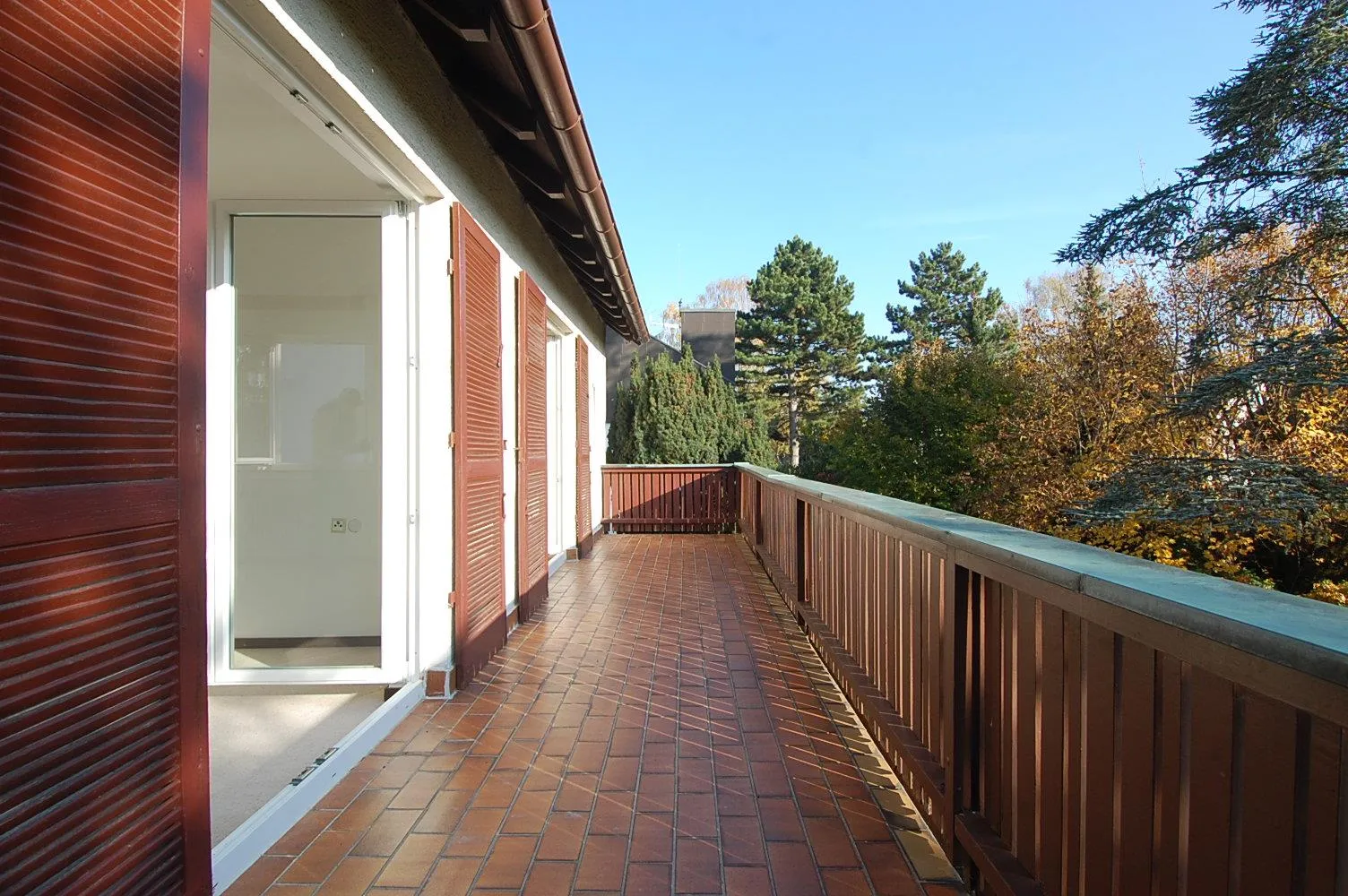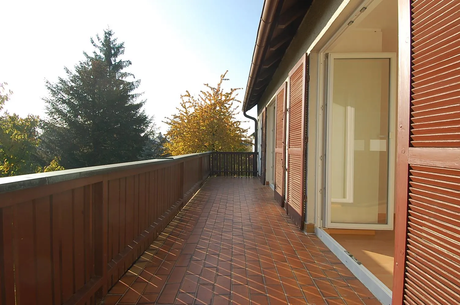 Der ca. 16 m² große Süd-Balkon ist vom Wohn- und vom Schlafzimmer begehbar.