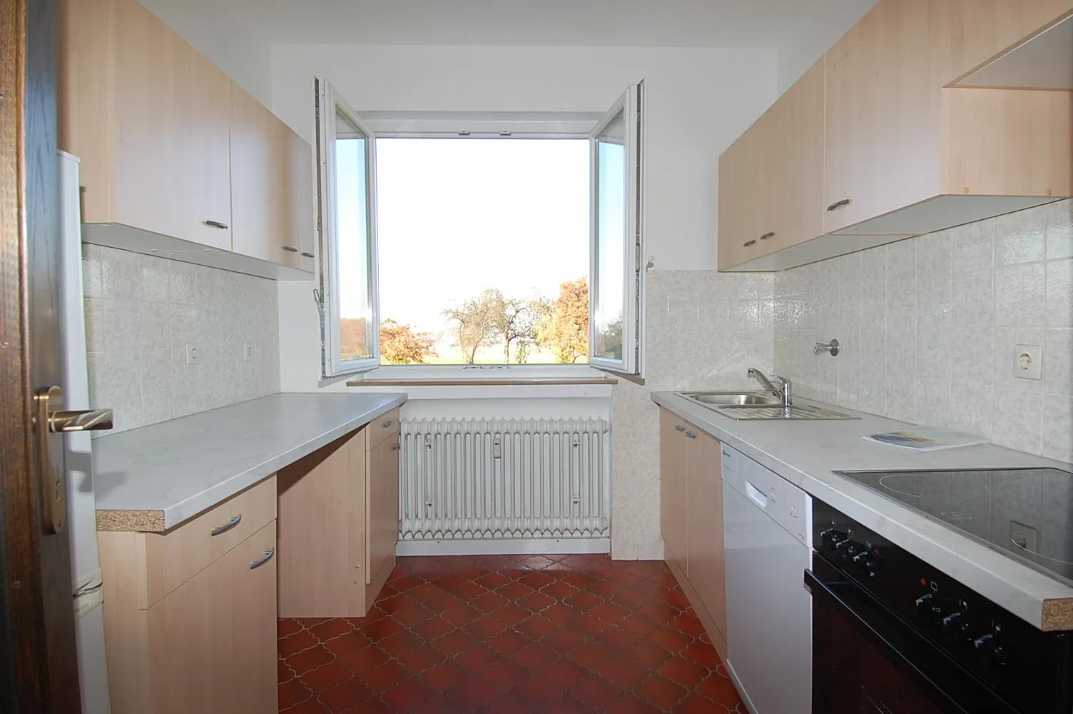 Die Böden in der Küche und im Badezimmer sind gefliest.