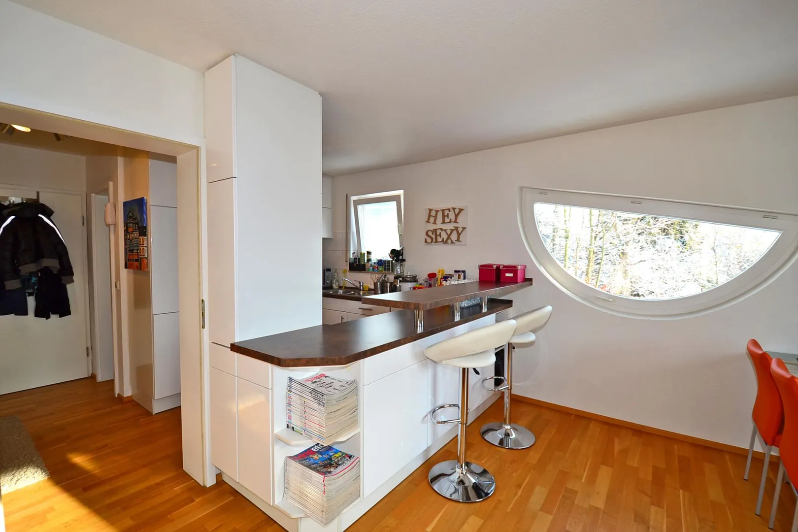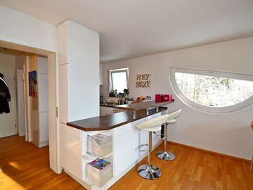 Zur Wohnung gehören eine hochwertige Einbauküche sowie ein Abstellraum im Untergeschoss.
