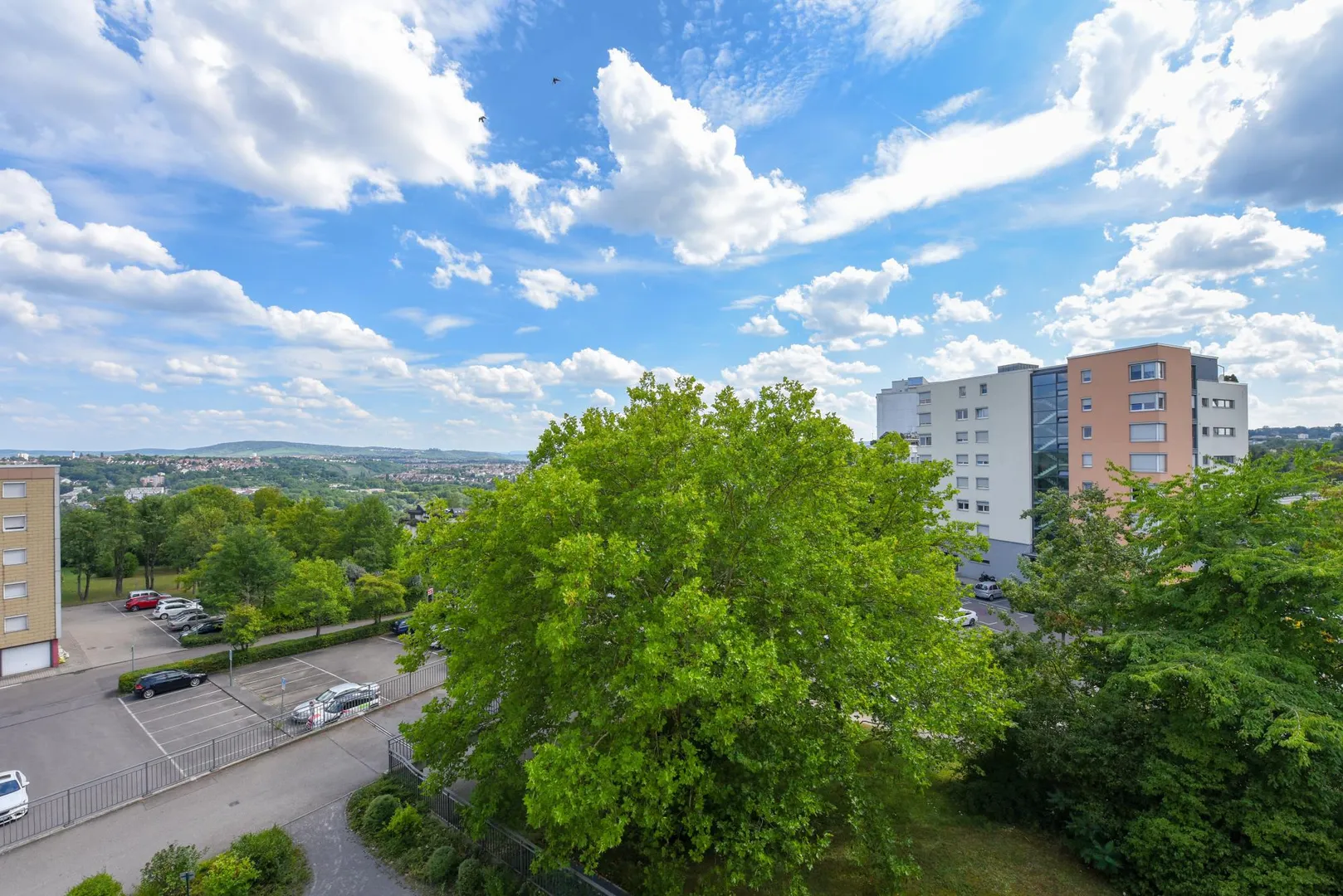 Diese möblierte und neuwertige 2 Zimmer-Wohnung befindet sich im 4. Obergeschoss eines 8-geschossigen Hochhauses.