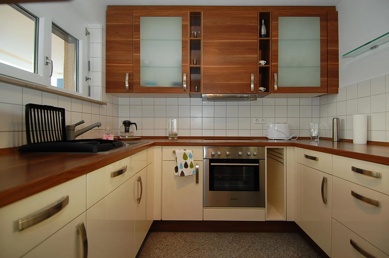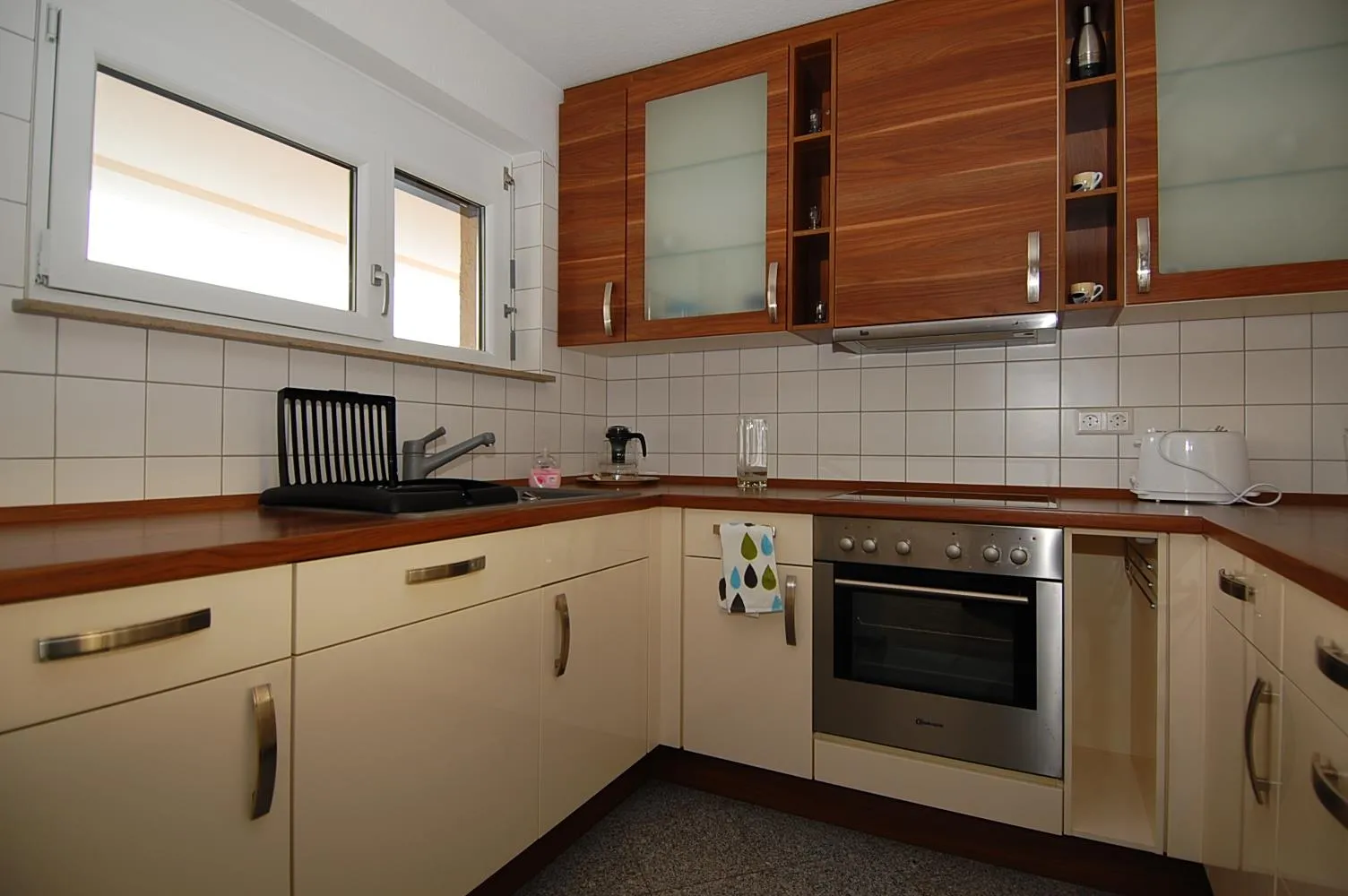 Die Küche ist zum Wohnzimmer offen und ist mit allen Elektrogeräten ausgestattet.