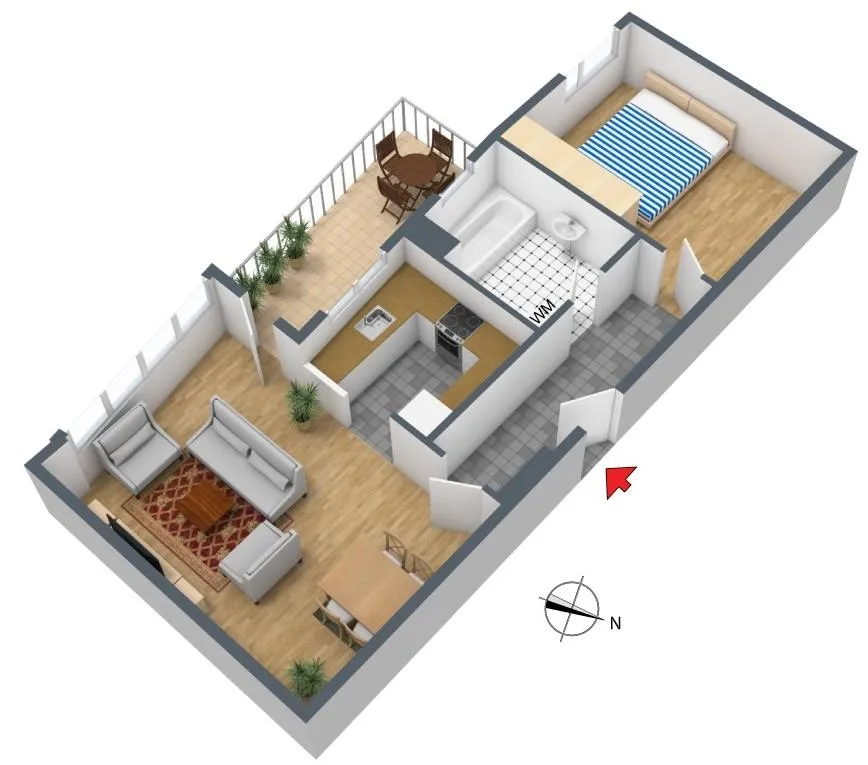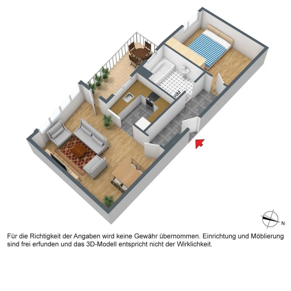 Der Grundriss der Wohnung ist sehr gut. Alle Räume sind vom Flur erreichbar. Das Badezimmer verfügt über ein Fenster. Der ca. 10,5 m² große und überdachte Süd/West-Balkon ist mit vom Wohnzimmer begehbar.