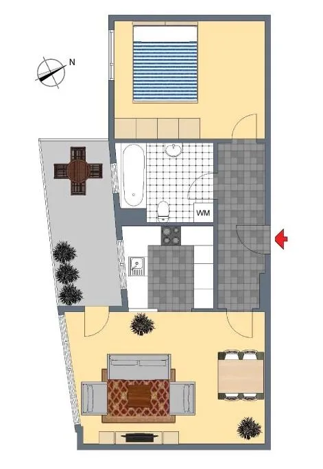 Die Wohnung befindet sich in einer absolut bequemen Lage. Der Zugang ist barrierefrei. Stadtbahn und Einkaufsmöglichkeiten sind direkt vor der Tür.